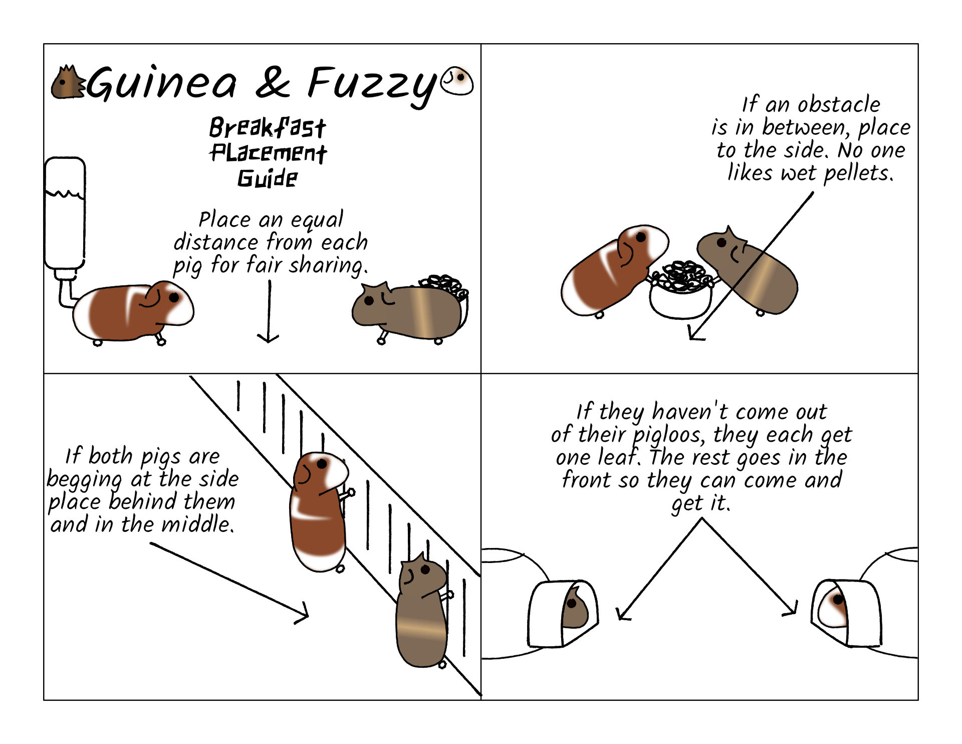 Put the food in the wrong place, and they might end up teeth chattering at each other. Or Potato will eat too slow and Beanie will get all the goodies.