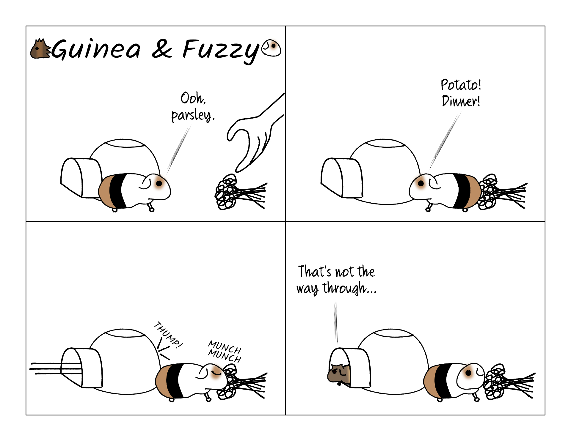 Potato does tend to run around recklessly. Whenever I hear crashing and thumping from the next room, it's always Potato, running laps and smashing into the walls and pigloos. It's amazing he can move so fast.
