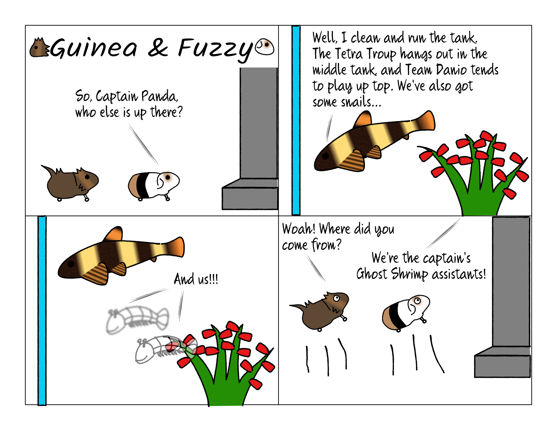Daughter of comic #1 February 25, 2021 - 11:05amThe ghost shrimp shed and eat their skin. They are so cute when they try to climb up the tank walls!🥺🥺🥺 |