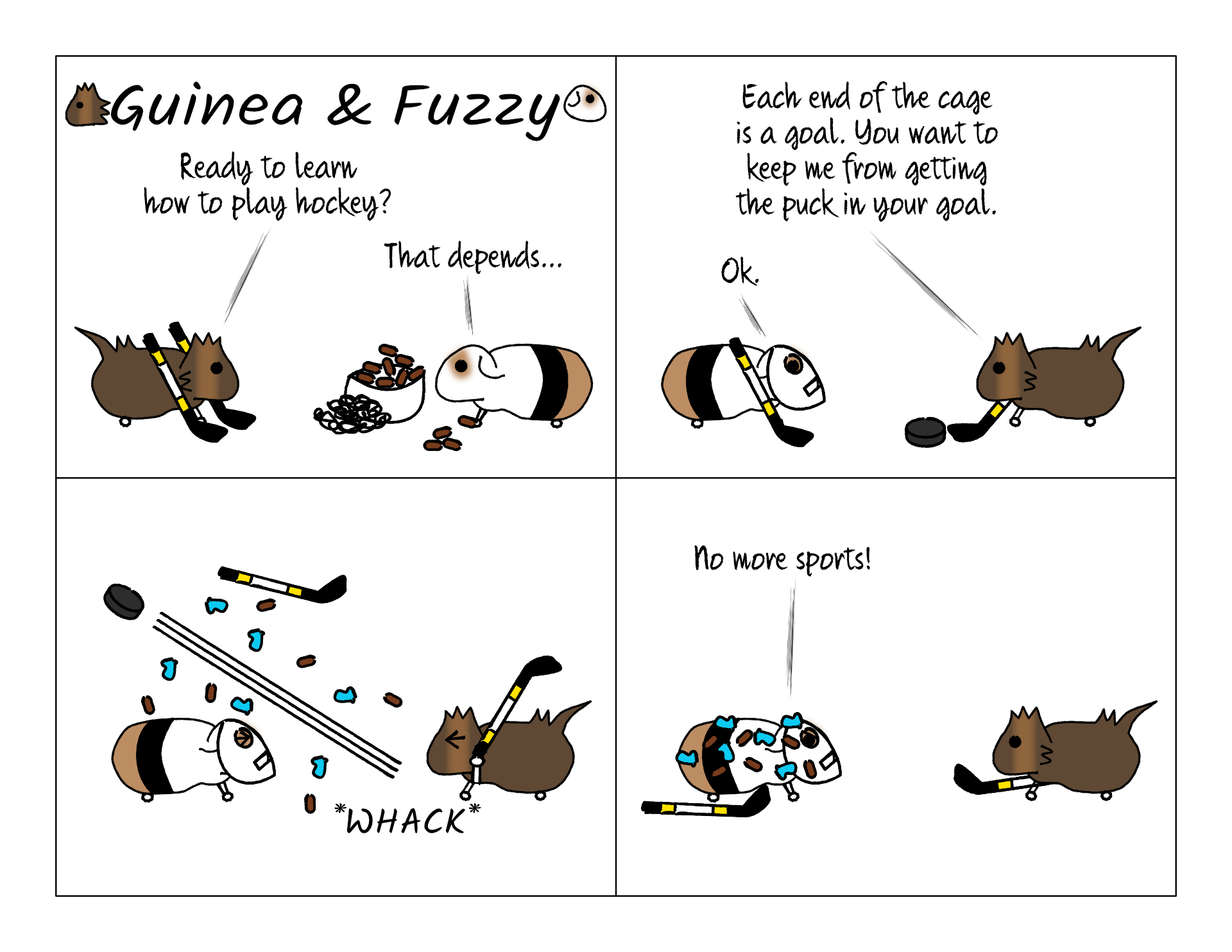 I think the pigs would look really cute in hockey uniforms. Maybe minus the hockey mask. Why isn't there a "Guinea Pigs" team in the NHL?