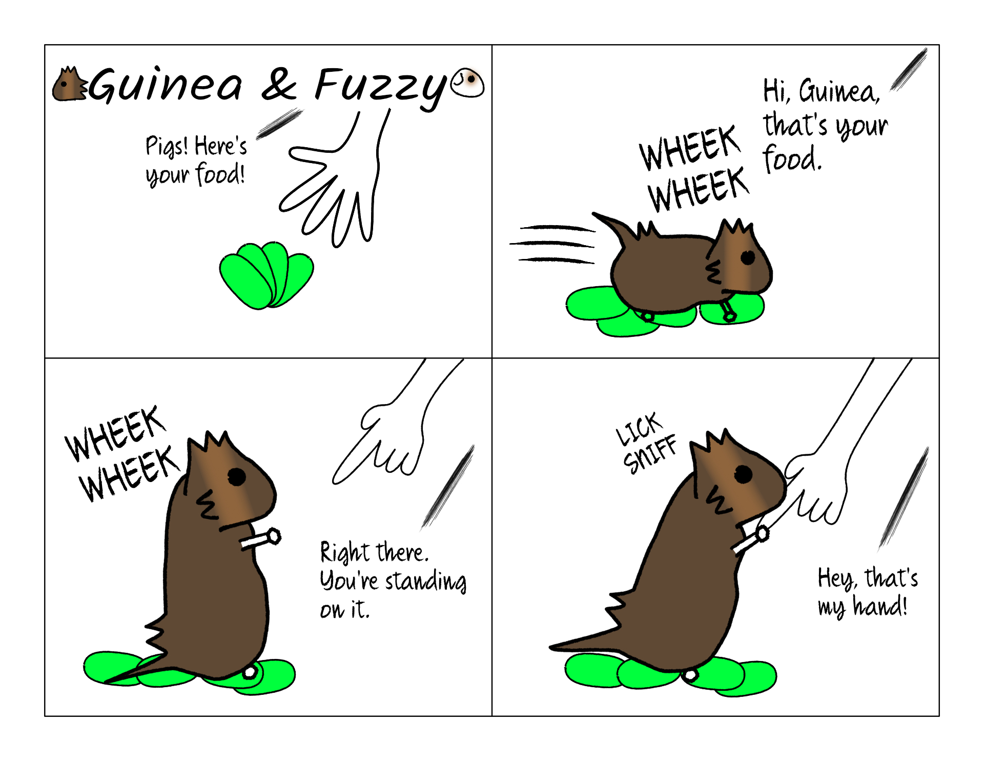Guinea is the one most guilty of this. We're not sure if he's just being friendly, but we highly suspect he just gets confused about whether the food that you just dropped is really all of it, or you're concealing the best in your hand and rewards await the cavy who can sniff it out. I've heard most pigs do this, so at least he's not alone.
