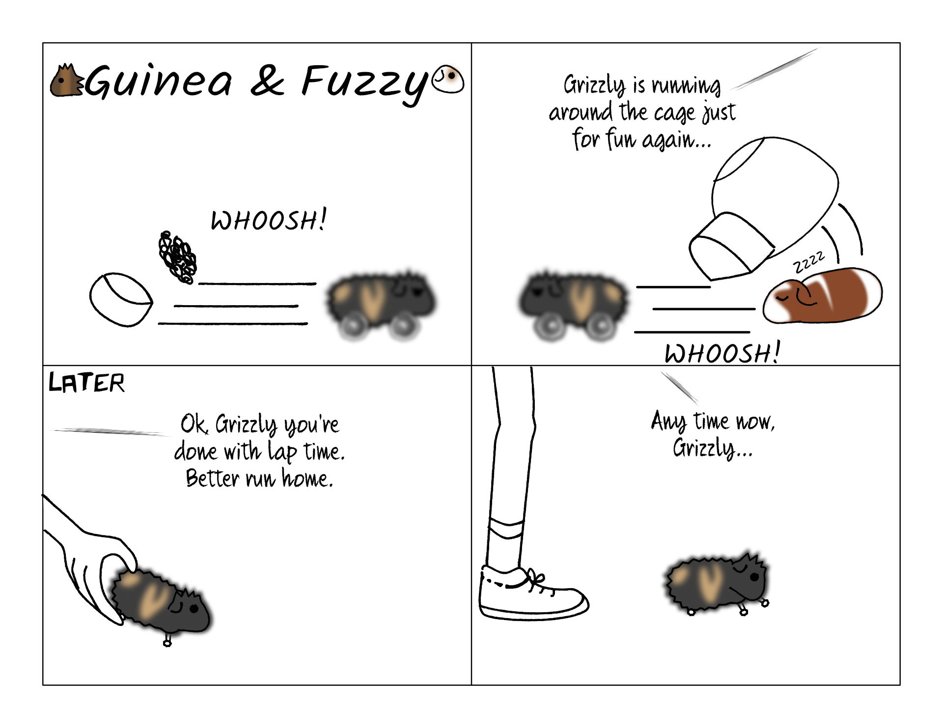 Even though Grizzly runs super fast in the cage he's never tried to run away into the house. He doesn't want to recklessly run into the unknown. When he was still learning the way back to the cage he would go cautiously.