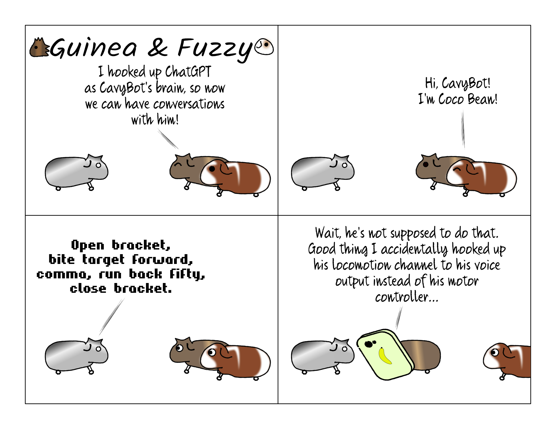 This is something I've always wanted to try: using ChatGPT to control locomotion or physical behavior on a robot. Only I suspect it would have a hard time visualizing where it would end up after each of it's own statements, so it would have to be provided some pretty high level information about its situation to be able to give meaningful instructions.