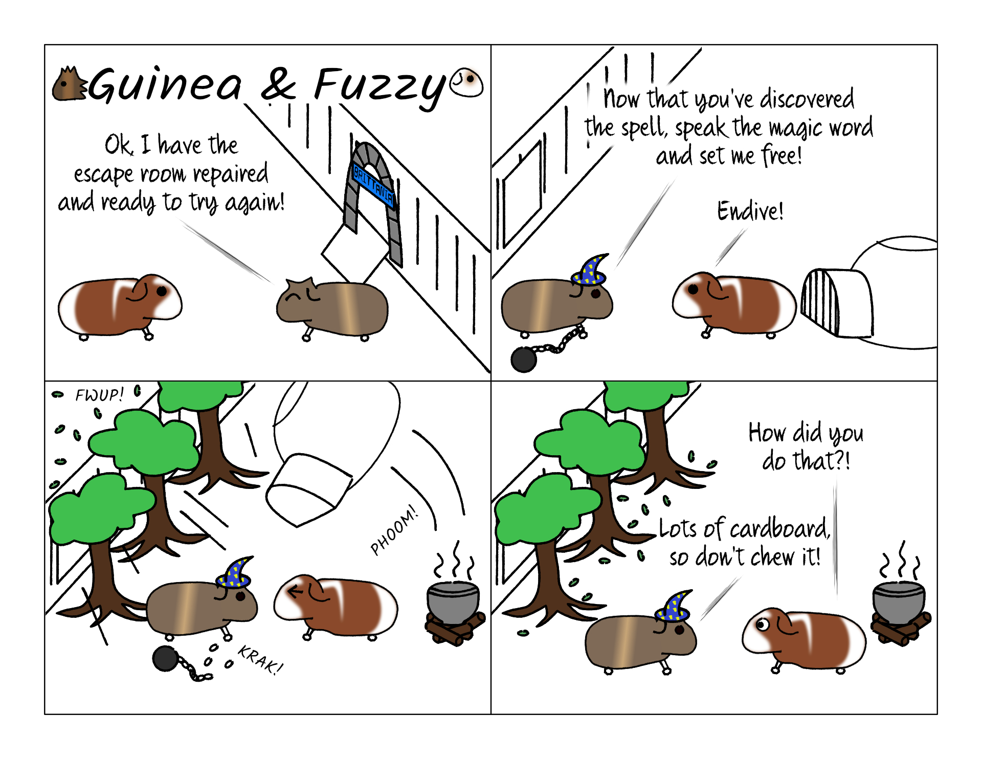 This is what we should really get Potato for all of his special projects. More cardboard! He could make anything out of it, and it makes a convenient extra pigloo in the meantime. Clean, pet-safe cardboard, of course.
