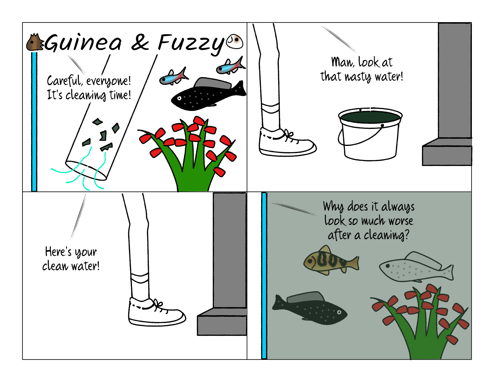 I usually manage to clean the fish tank before it gets noticeably dirty. The first sign that it's time for a water change is enough water has evaporated that the filter makes a loud trickle instead of being quiet. But even though it looks clean, I always manage to suck up sludge from the bottom, and the bucket usually looks nasty. But not only that, it also stirs some of the sludge up and the tank water actually ends up looking a little worse for a while until it all either gets filtered or it settles.