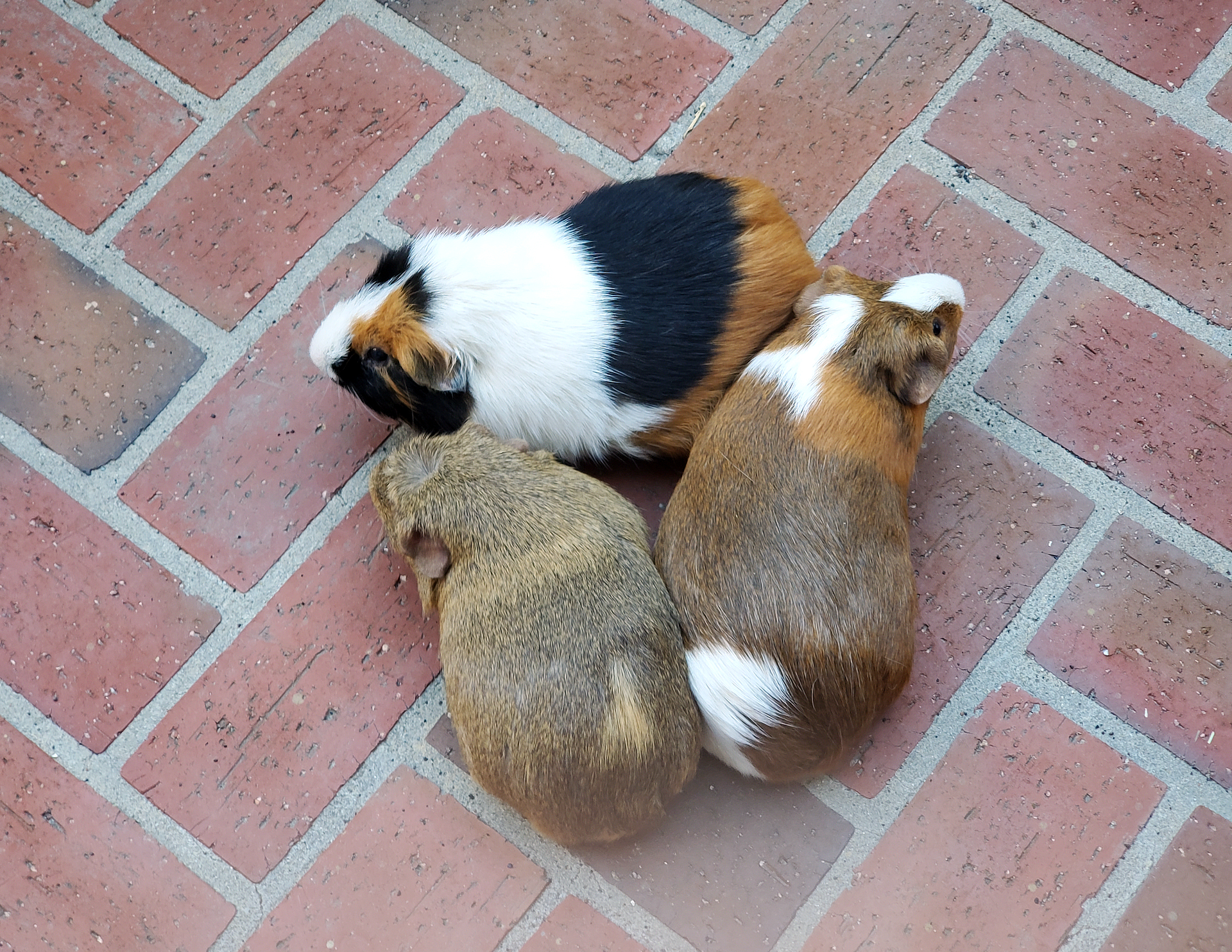 When we first got Bean and Potato, Bean was by far the smallest. But he quickly outgrew Potato and even Fuzzy, leaving Potato as the smallest pig. This might have been because of his dainty eating style. He wasn't very protective of his food. But it also might have been because he was the most active pig, and therefore the least pudgy.