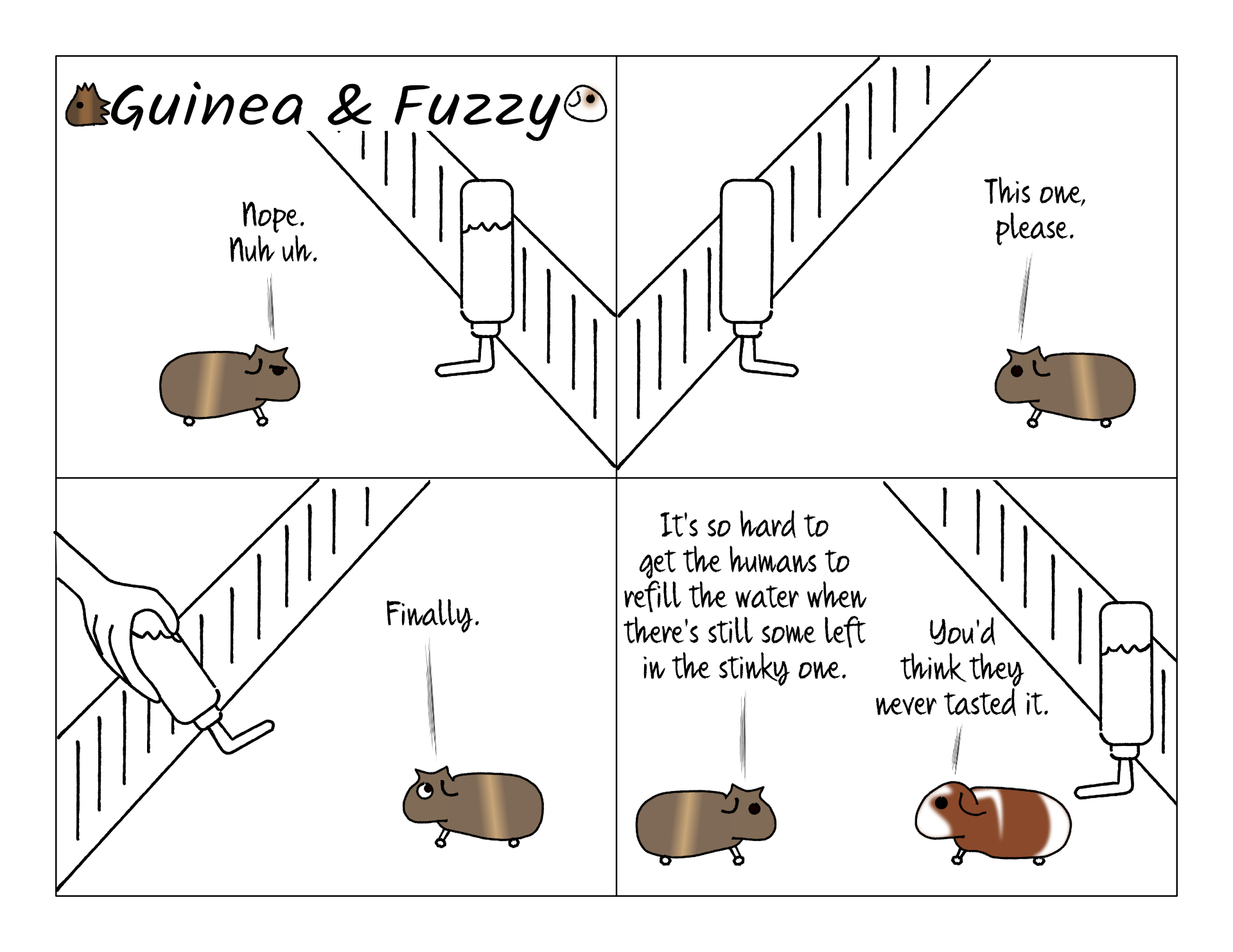 I think there was something growing inside the spout. I tested it with my hand, so I know it wasn't clogged, but the pigs wouldn't drink from it. Even when I swapped bottle locations, they swapped which one they drank out of. When I scrubbed it inside the spout extra hard with a pipe cleaner, they finally drank from it, even though I didn't see anything on the brush.