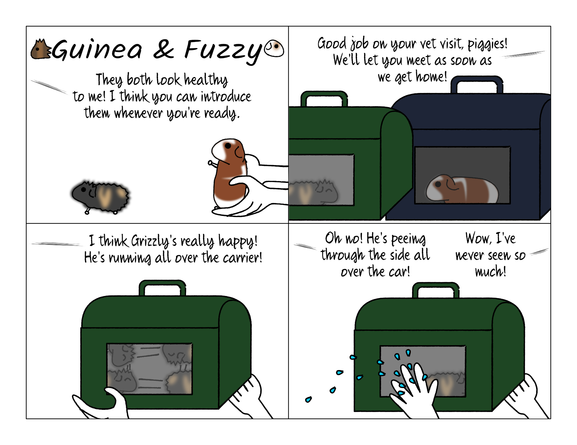 Unfortunately when he had to pee, he decided to aim out through the side. I've never seen guinea pig pee shoot so far! Luckily it did not get on the upholstery.