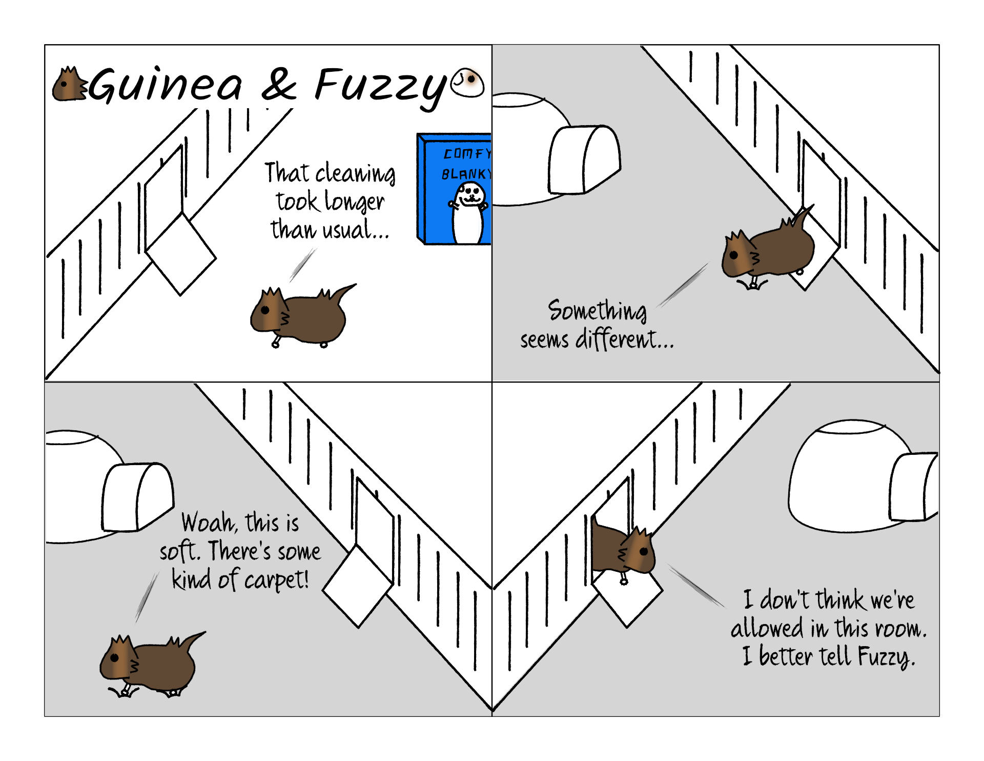 The pigs were really confused when they first discovered it in their bedroom. Guinea walked in and took 10 steps before he noticed something was very different, then immediately retreated from the room.