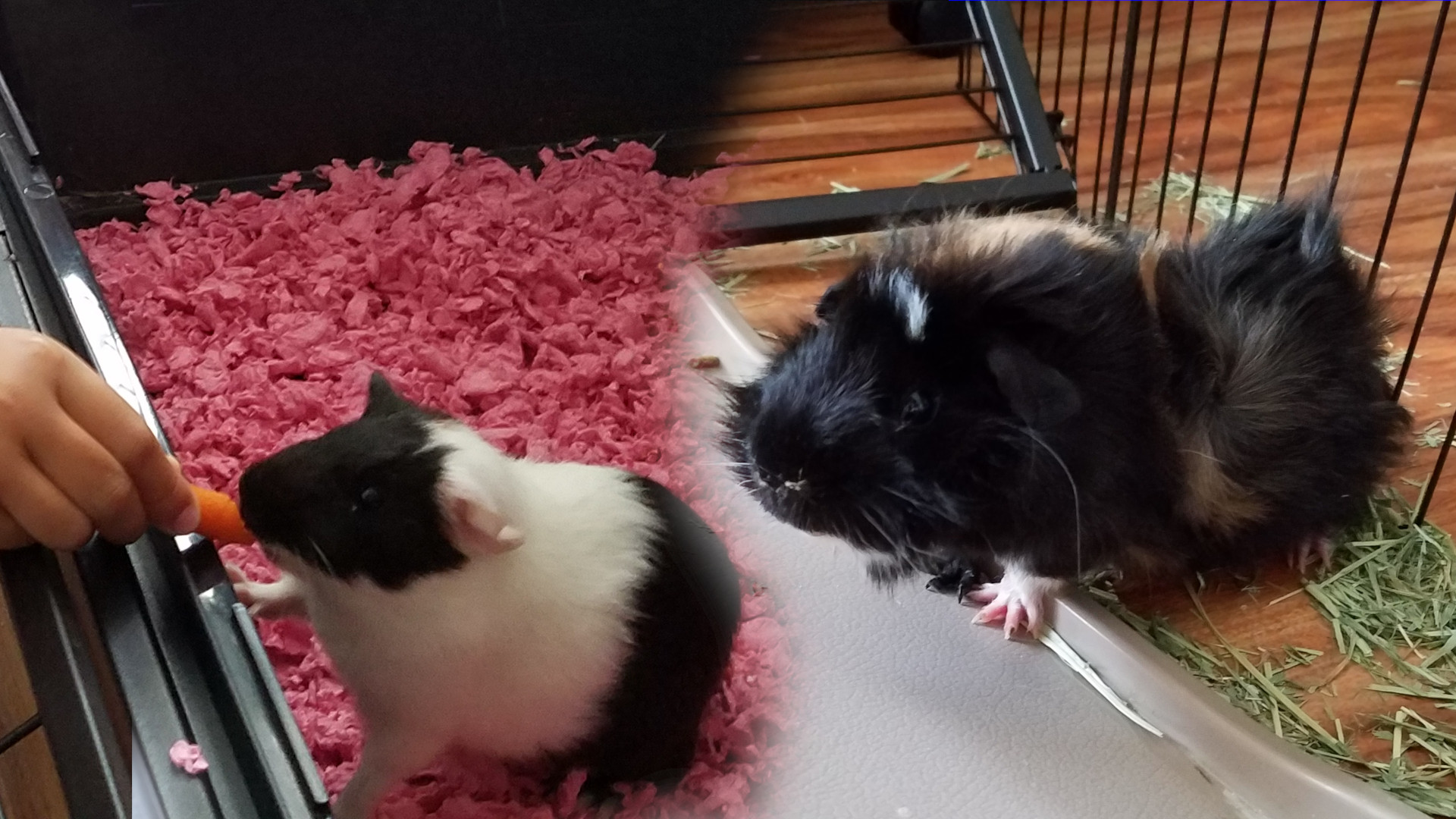 Guinea and Snowflake joined our family on Labor Day, 2016. They were both tiny babies, but seemed to get along really well right away. Back then, Snowflake was the one who loved to snuggle with humans. Guinea was shy and did not like to be held, although he would enjoy cowering in a lap as long as he was covered with a towel or blanket. We found out very quickly that carrot was their favorite food.