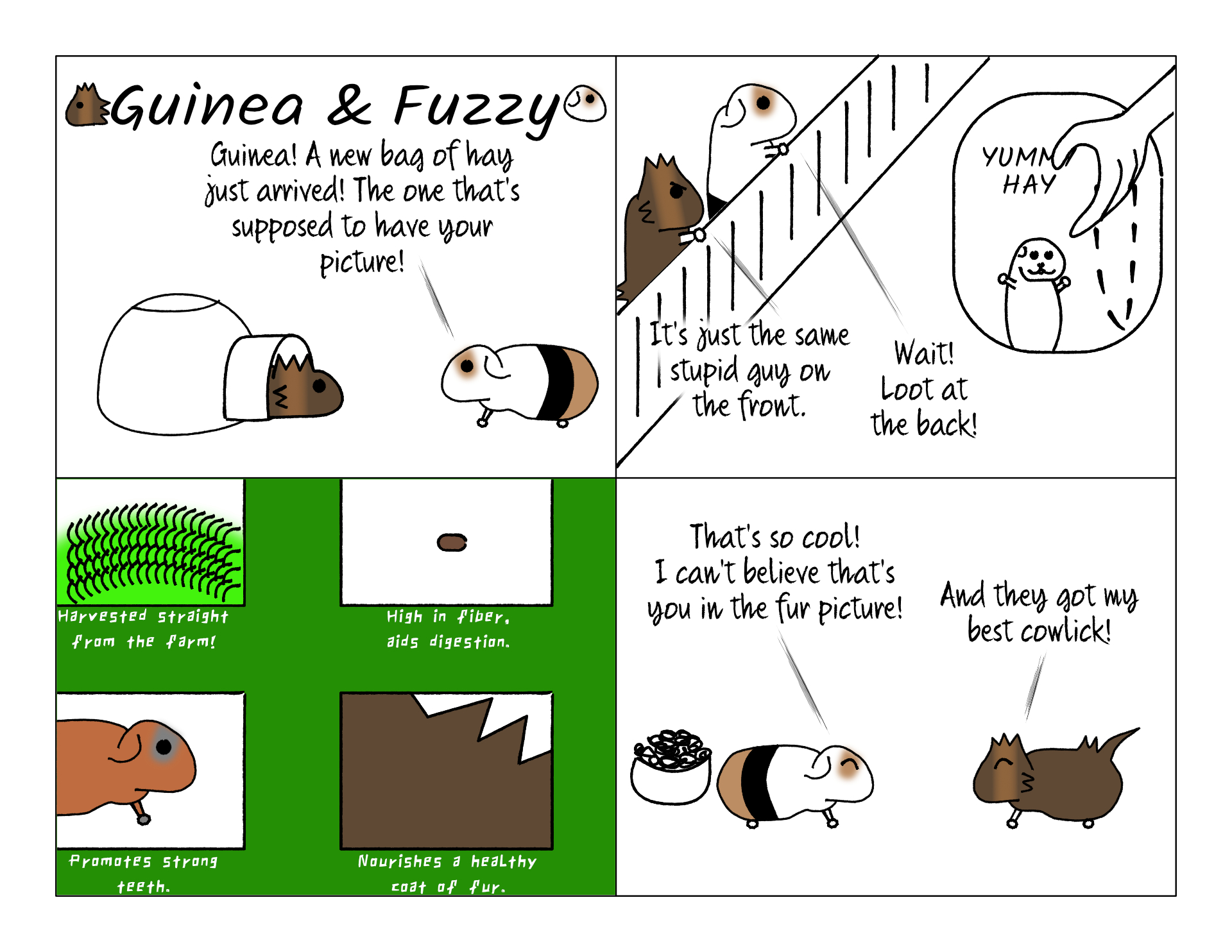I would be proud, even if it was just a close-up of Guinea's fur on the bag. I wonder if the pigs who are on the bag have proud owners.