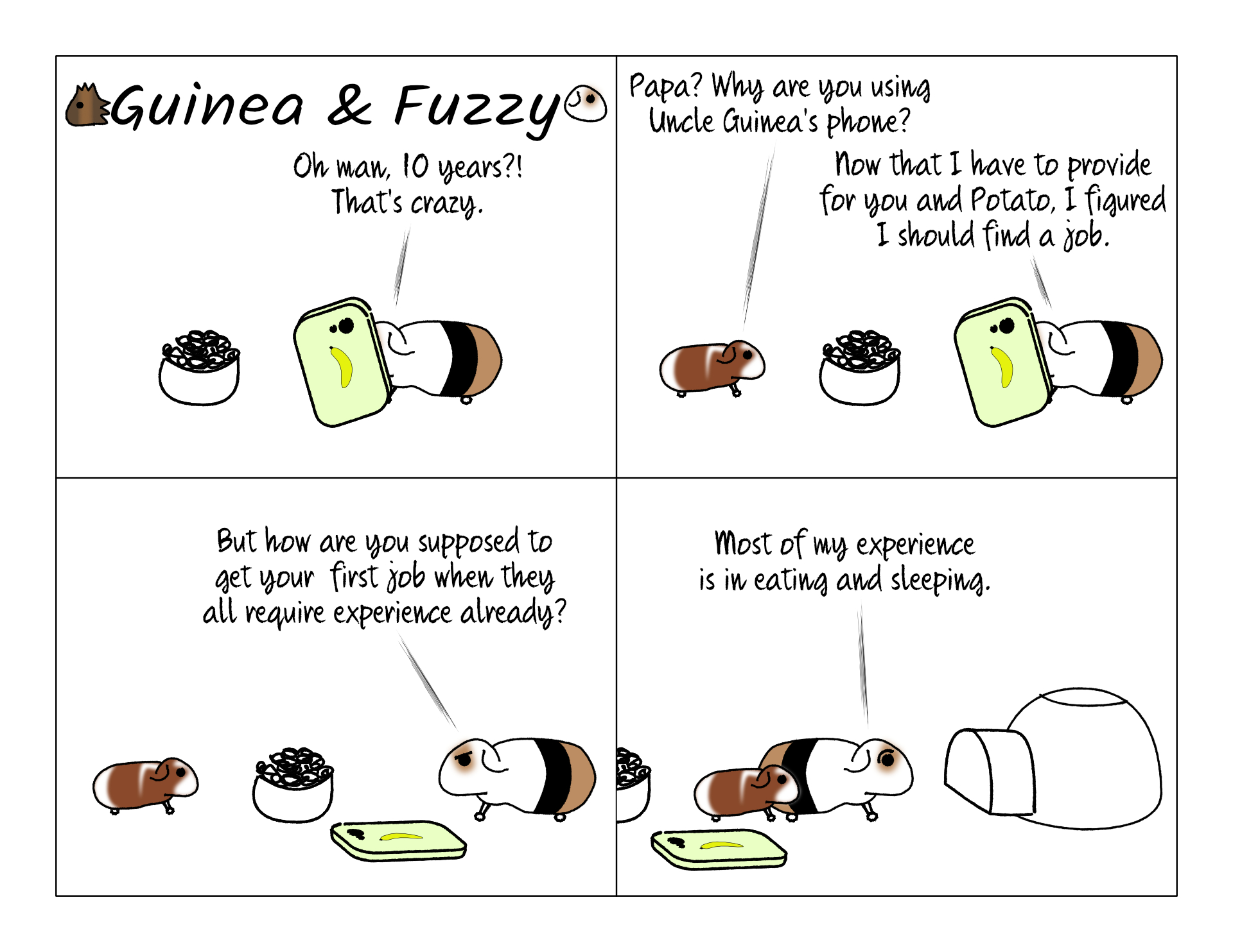 Fuzzy doesn't realize, he could probably get a job if he wanted, if he tried the right position. He'd be a great piggie model, for pig products. He just needs to put his little paws out and make puppy-pig eyes.