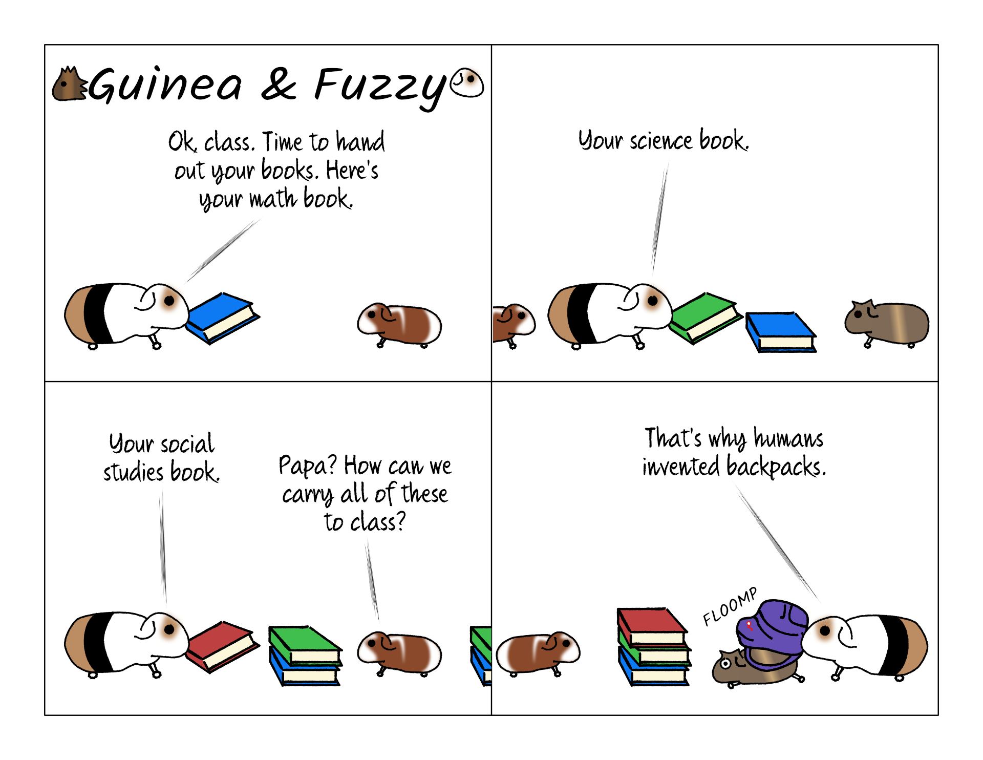 This is no joke. I remember my middle school backpack being about 240 pounds. It would be even worse for a guinea pig. Although if they're still learning addition, maybe they don't need them. At least their walk to school is short.