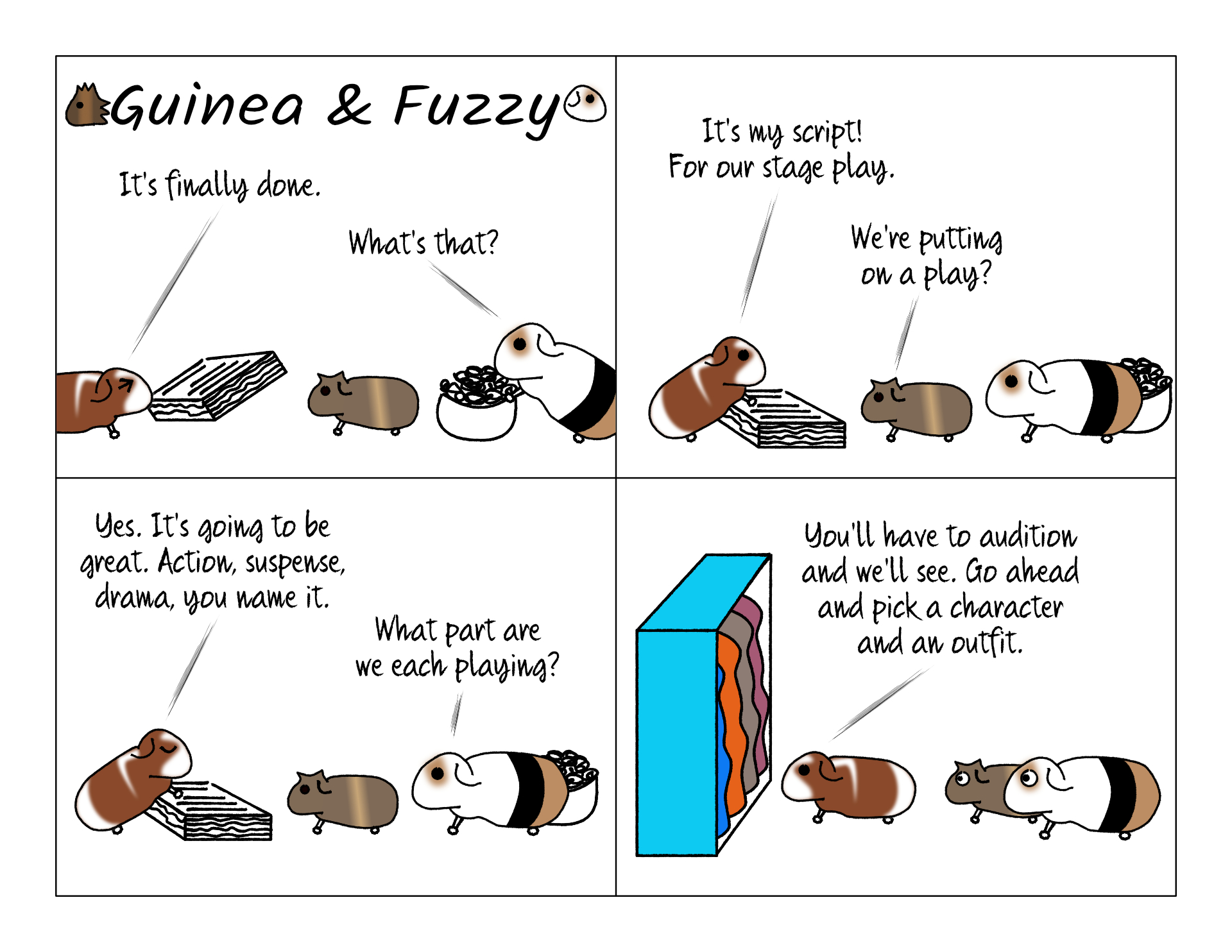 It would be fun if the piggies put on a show, because they could be so many funny characters. I don't know about costumes, though. I guess they have all been a pirate before.