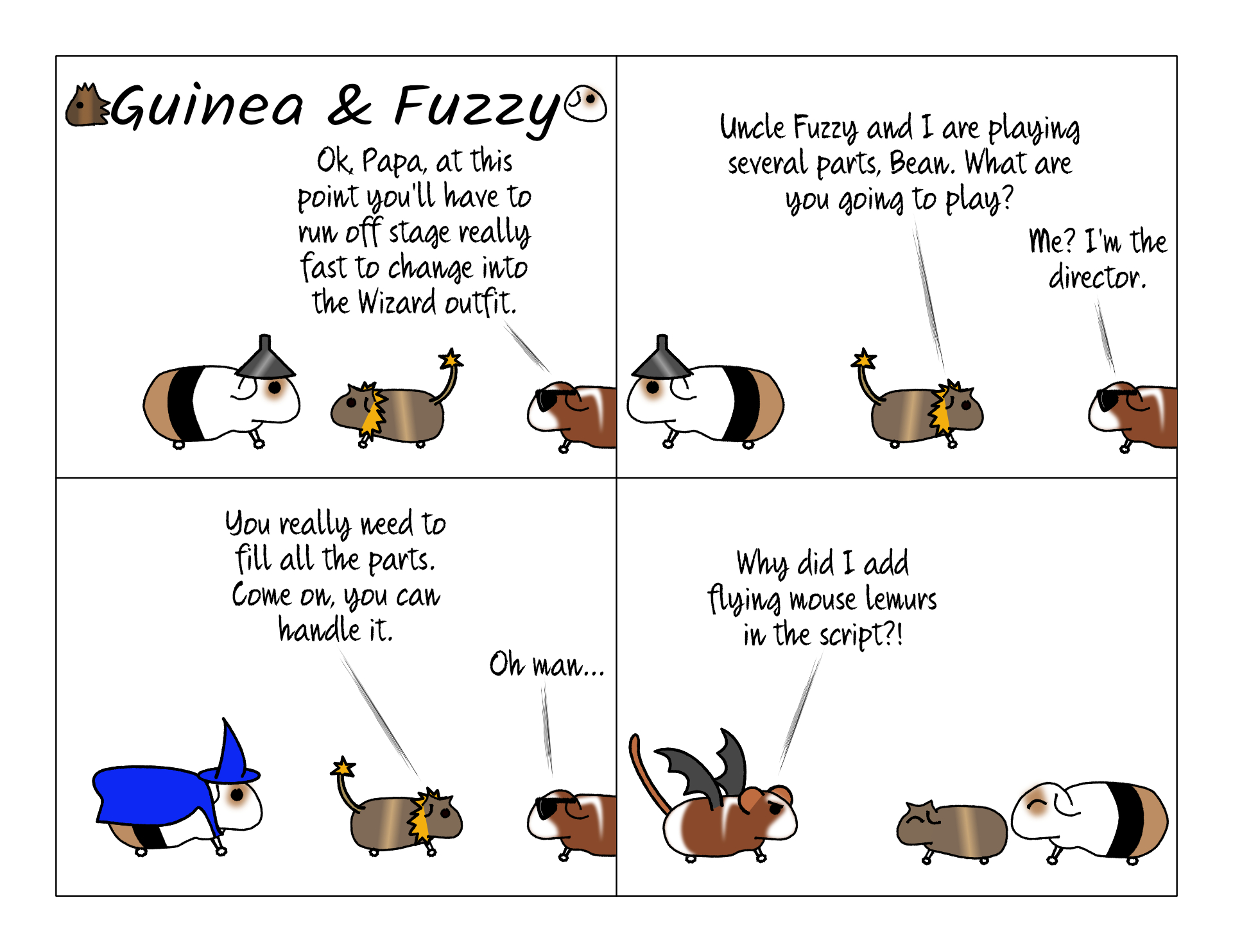 Bean is probably about the same size as a mouse lemur, so it's a good part for him. But it means both he and Potato have to wear tails, which must be a weird experience for them.
