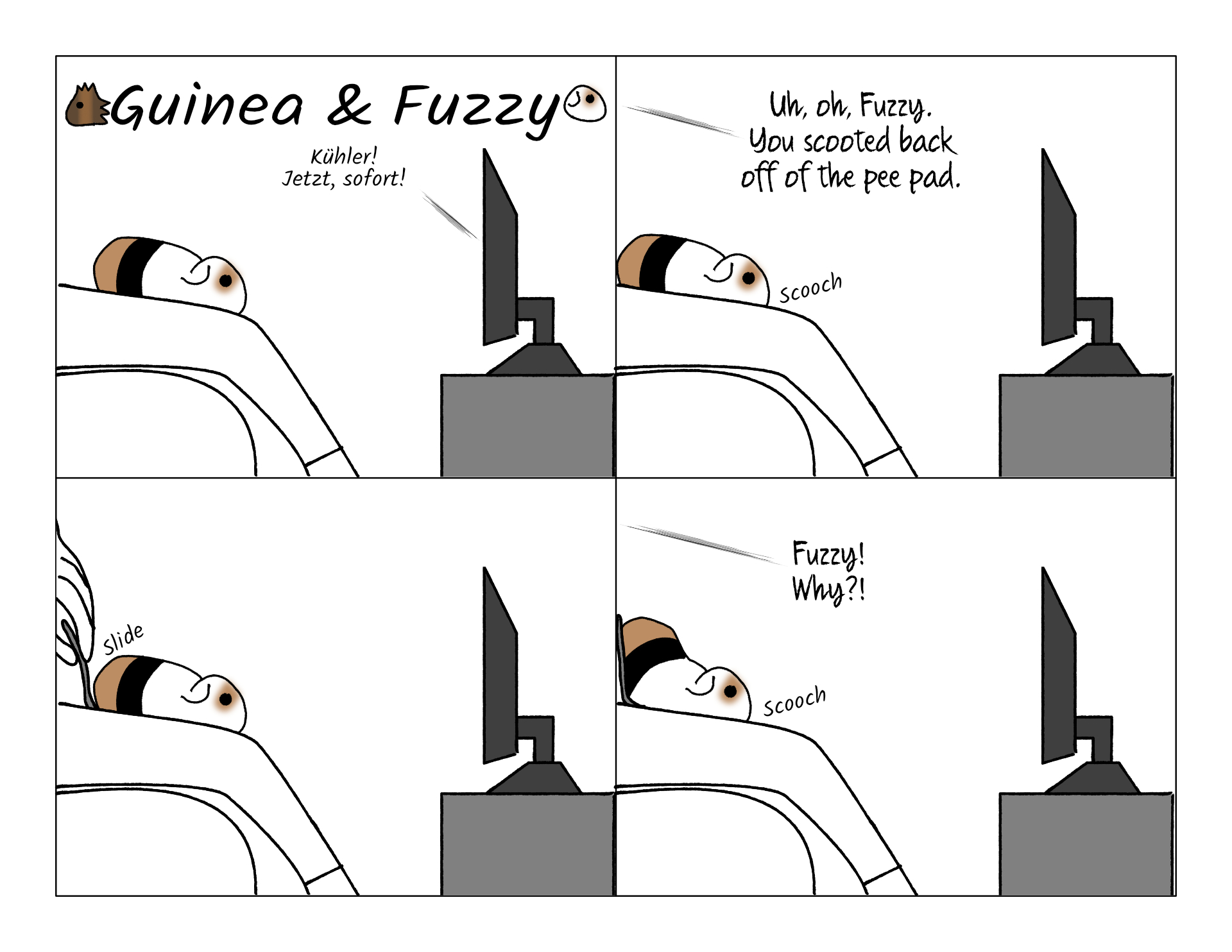 Whenever Fuzzy watches movies he always likes to scooch back on the pad so much, it's hard to keep his rear over it. I'm not sure why he likes to do that so much. It even sometimes ends up with him scooching uphill.