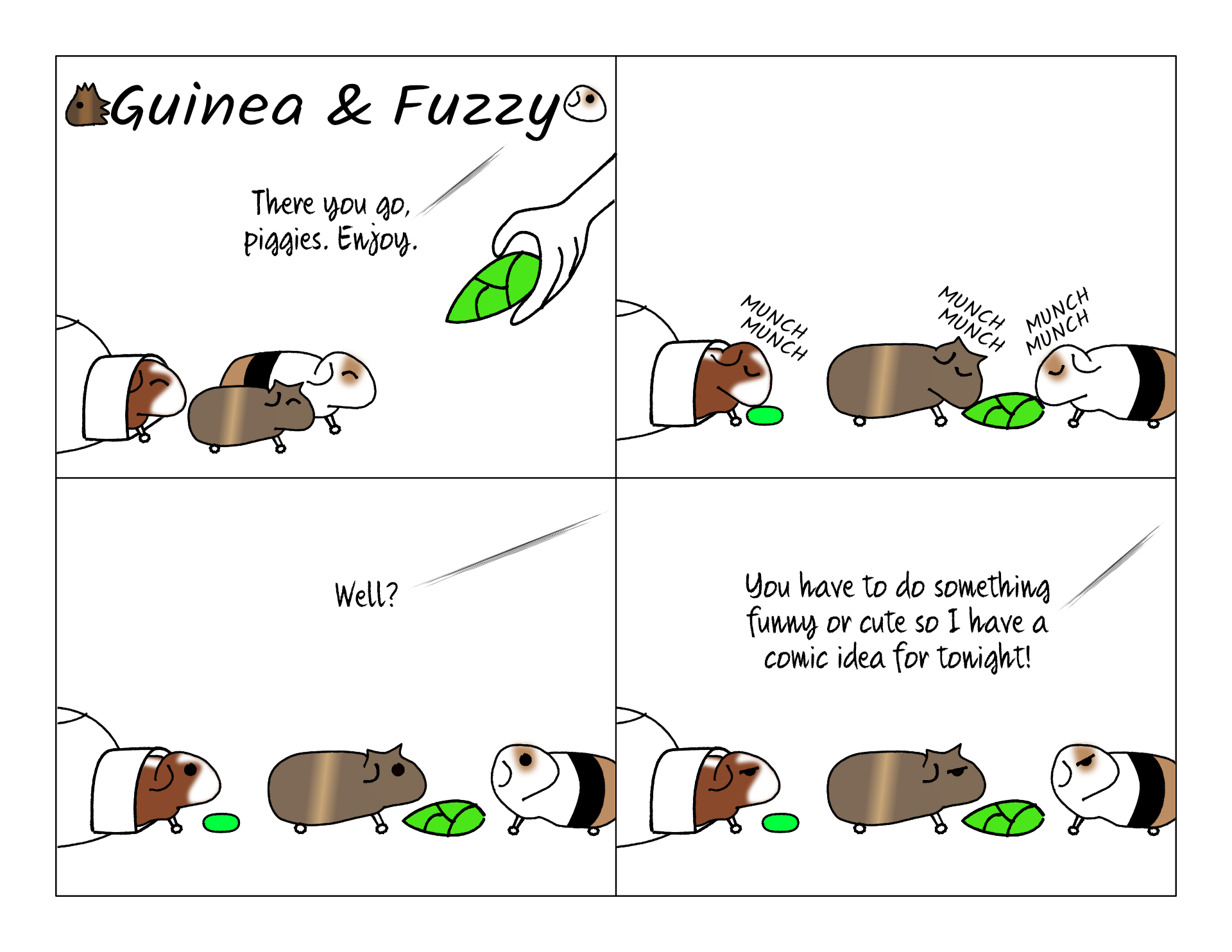 It is pretty challenging coming up with new ideas every single day, sometimes. They come in waves. The pigs will get in some funny situation and do a bunch of comic worthy stuff all in a row, or I'll come up with some story idea good for five or six panels. And other times I'm desperately still trying to come up with something at the last minute. Like this particular time.