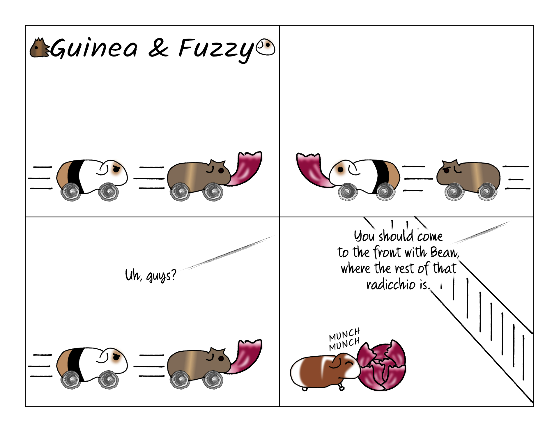 Fuzzy and Bean aren't the only one's who ever fight in the back of the cage over food when most of the dinner is up front. Usually Potato is first in line at the front of the cage. But if I show up before he realizes it's already dinner, and I put a little snack back there for whoever didn't come forward, he's just as likely to fight over it instead of coming to get more.