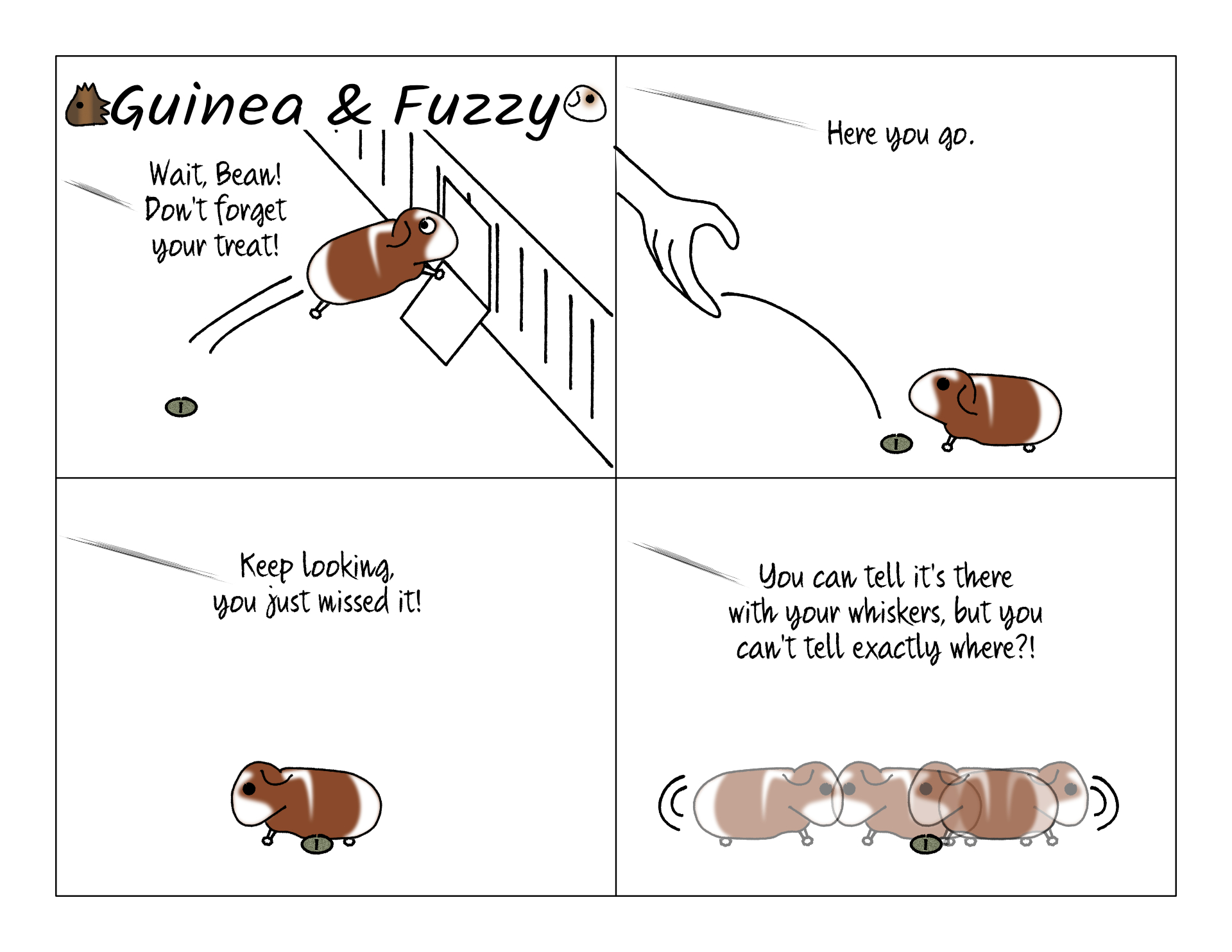 I think their whiskers must not be as sensitive as other animals, though. This time Bean kept giving up, and when he would turn his head to leave his whiskers would all brush the pellet. He'd realize it was there somewhere, but still not be able to find it!