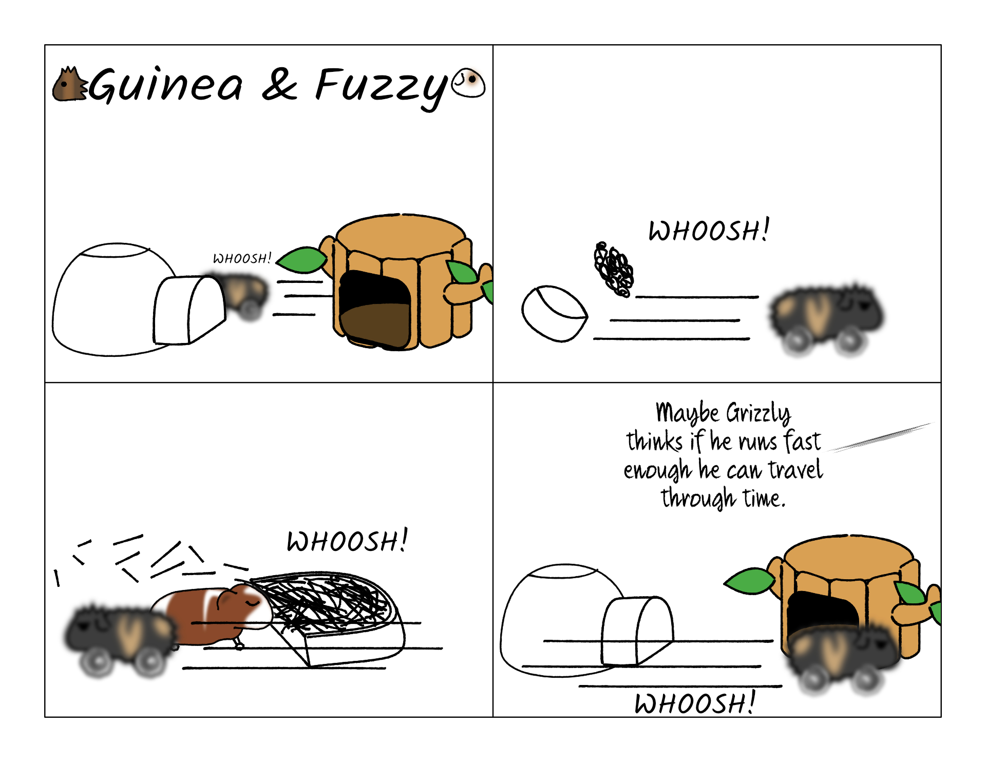 As a young and energetic pig, Grizzly can only handle about ten minutes of lap time before he has to get down and run around. So we let him run back to the cage, which he does super fast. And because we were concerned about an occasional cough, we try to keep him on daily vitamin C treats. A few times we gave him those as a reward, after a successful laptime.