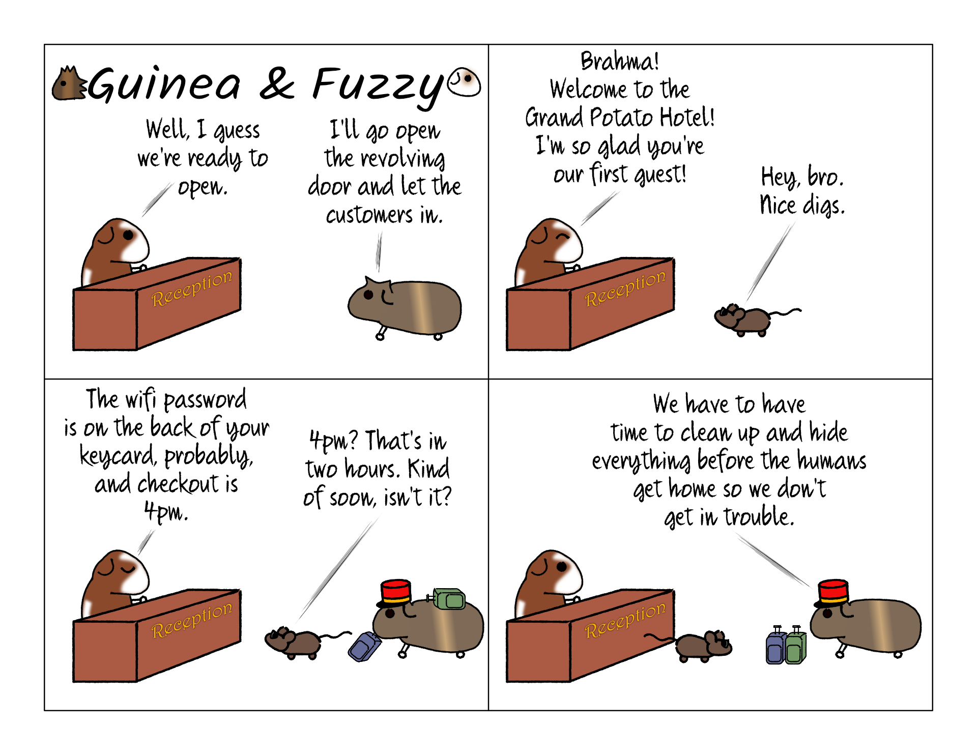 I like Potato's bellboy hat. Bean needs to get a concierge outfit.