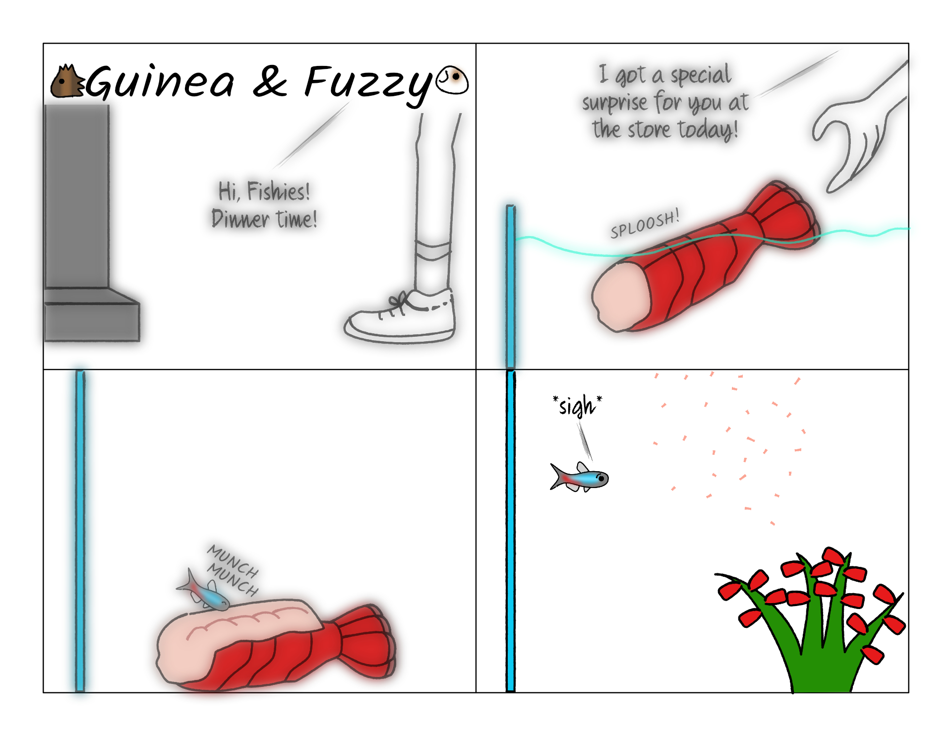 Maybe this seems crazy, but I bet our fish would love some lobster. Their food contains brine shrimp and bits of fish. And a lobster is basically just a really huge, extra juicy shrimp.