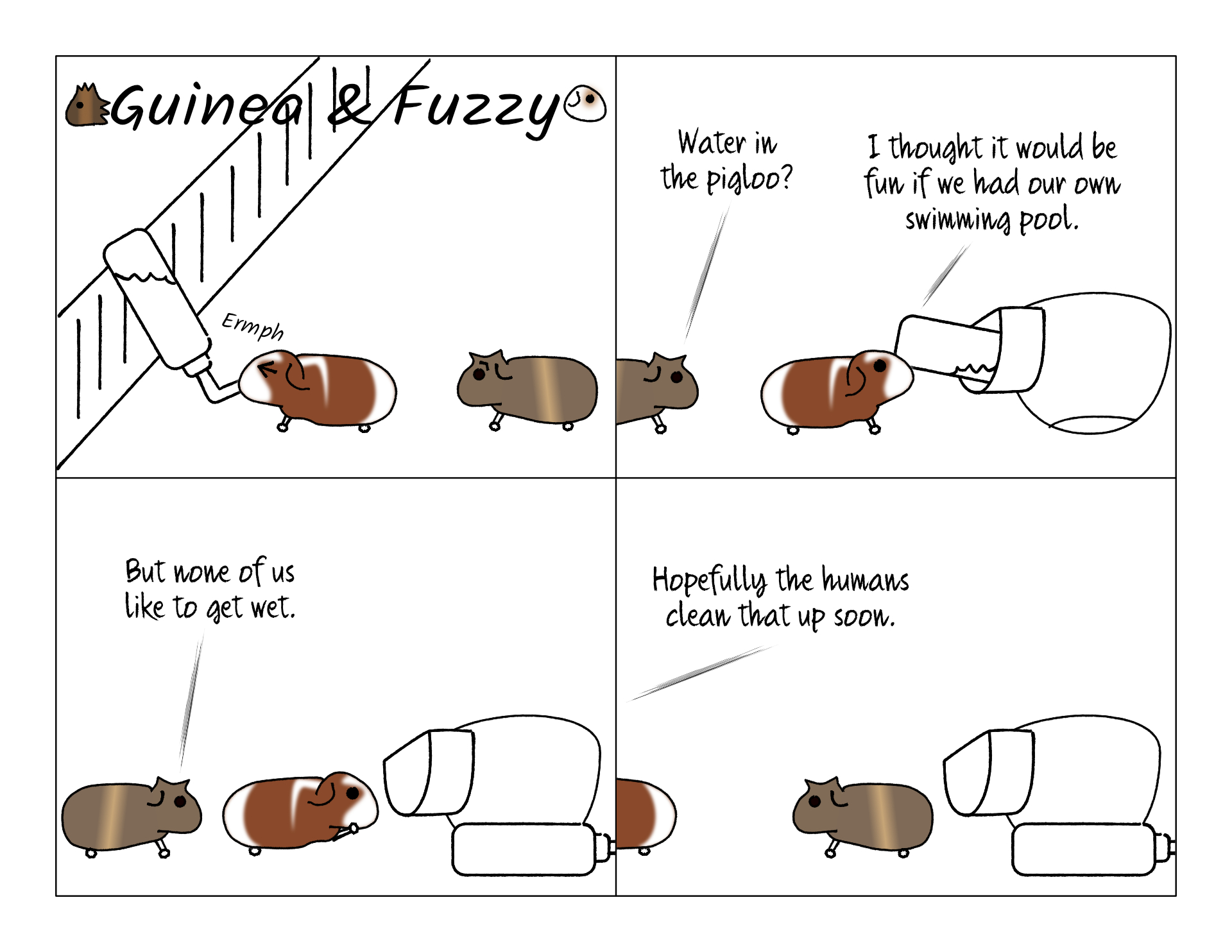 The big accident, though, was when I dropped the water bottle and it cracked open, dousing half of the cage in an instant. Luckily the pigs were waiting on the other side, but I had to carefully dry things before putting the liner back on.