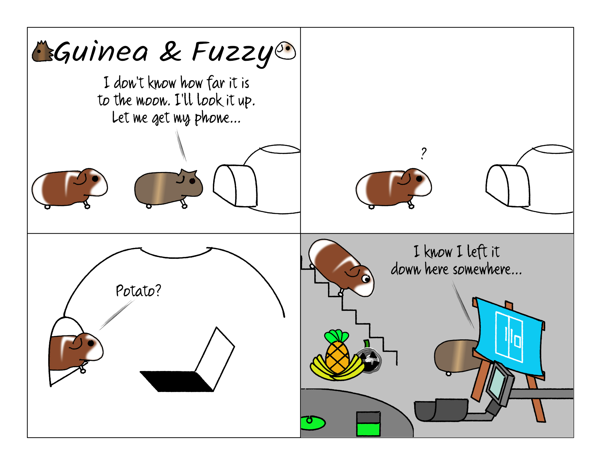 So that's where Potato keeps his collection of stuff. And not just him. Clearly that basement has been there for ages, since Guinea and Fuzzy must have used it numerous times. Where else would Guinea keep his moldy watermelon.