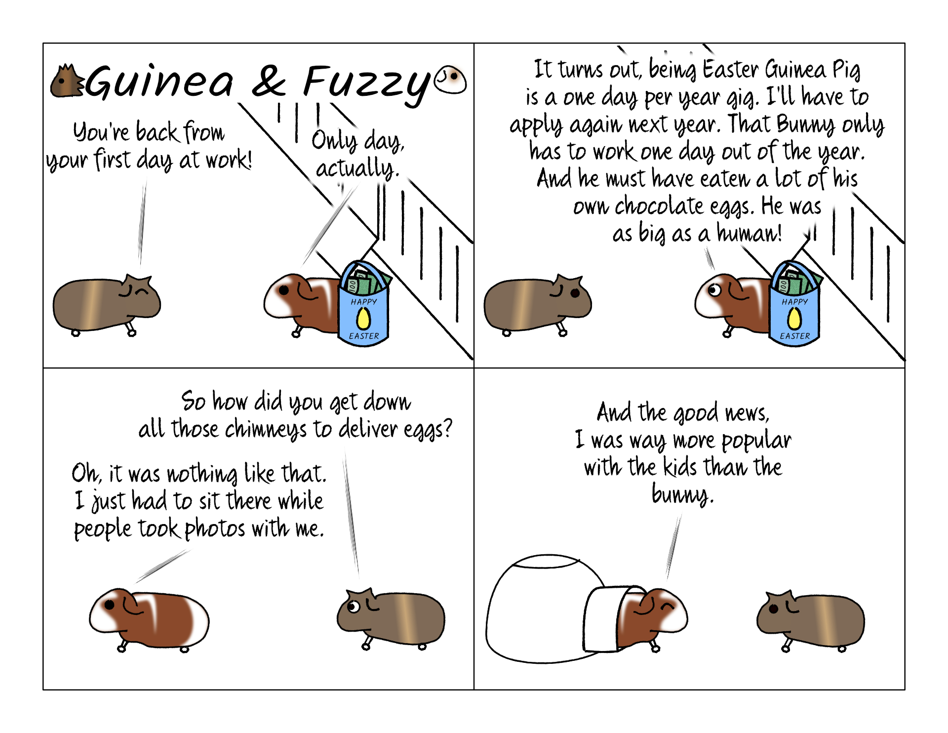 I think anyone would agree. If the mall Easter Bunny had a guinea pig with him that the kids could pet while they're having their picture taken, it would be a huge hit. I hope Bean remembered to wash his hands... And all of his fur!