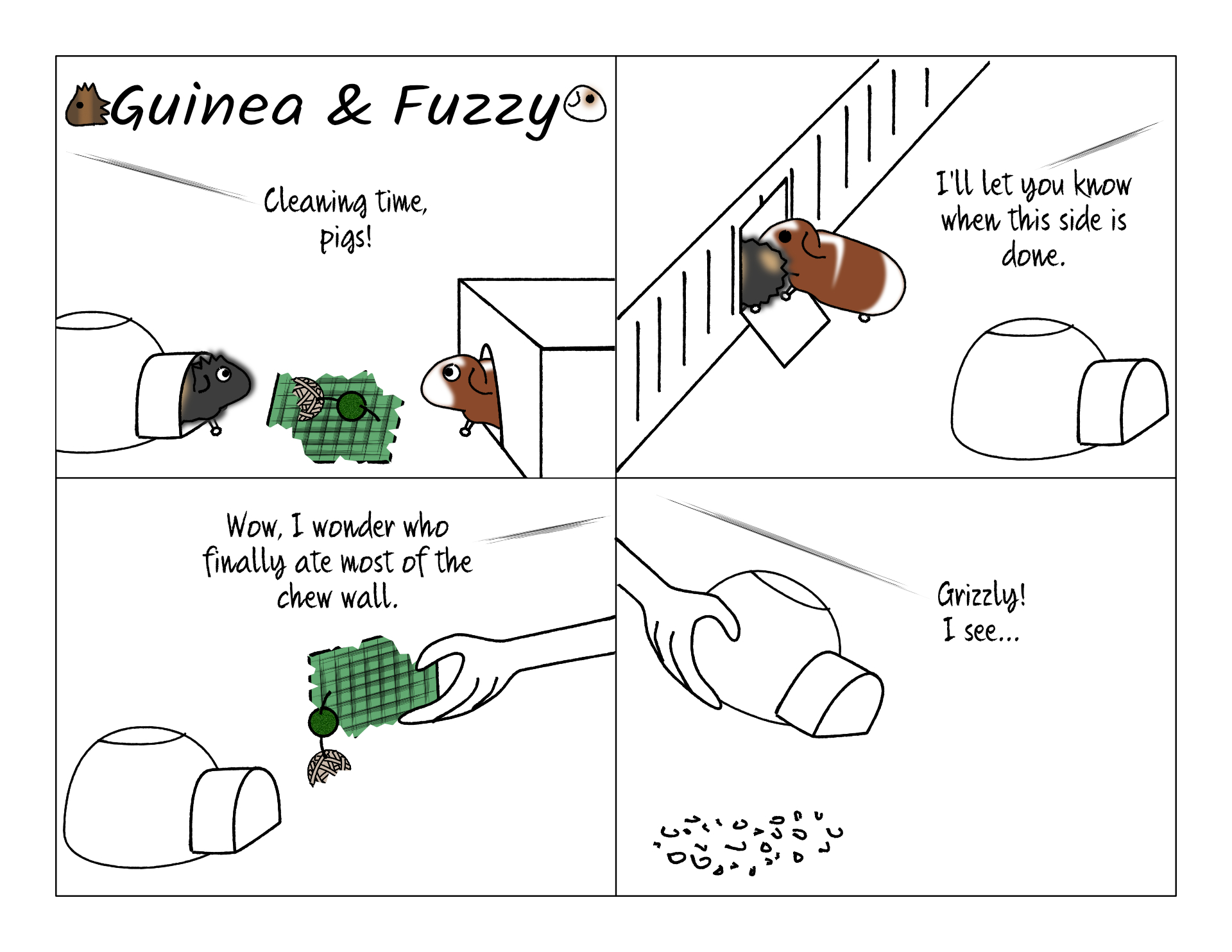 The pile of chew wall pieces in the pigloo with him was the big hint.