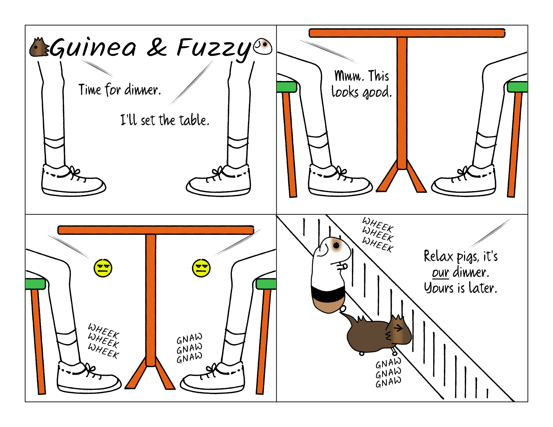 The pigs are right next to the dinner table. Usually they make cute wheeking noises, or just a couple of poots. If they're even awake. But once in a while they get all excited and think it's their dinner time.
