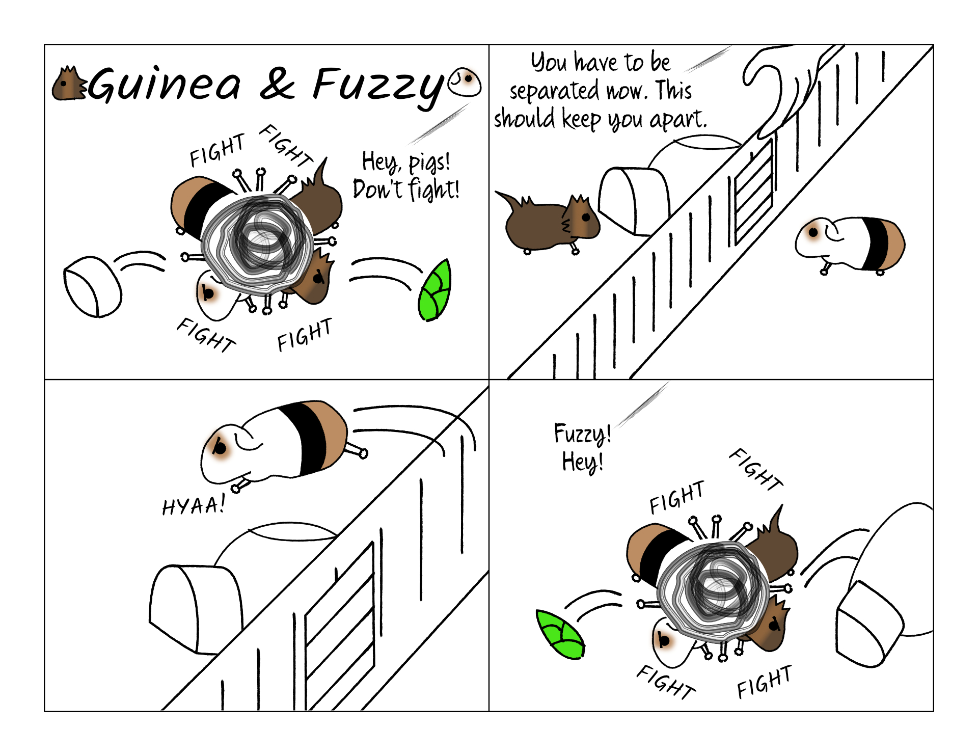 But a couple times, Guinea or Fuzzy were able to knock the door down. And one time Fuzzy was able to leap it!
