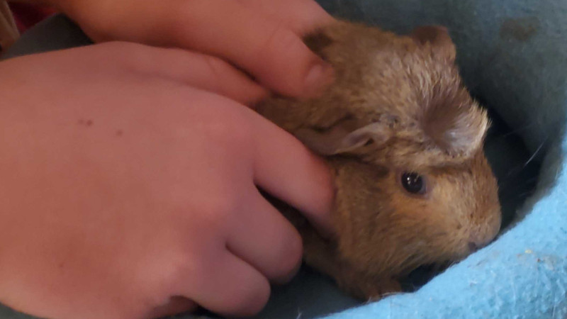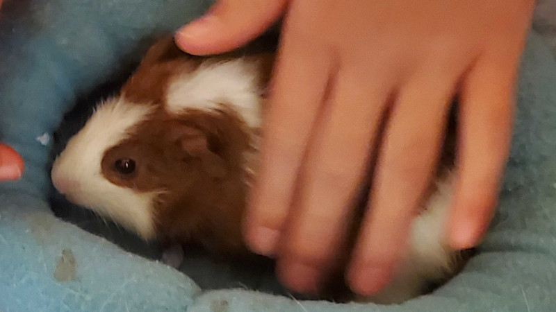 That's right! Not just one new guinea pig, but two! Surprise! Meet Coco Bean and Potato. Or "Tater and Bean" for short. Coco Bean is a brown and white American guinea pig, and Potato is entirely brown but with a cute little crest on his head. They are so tiny!