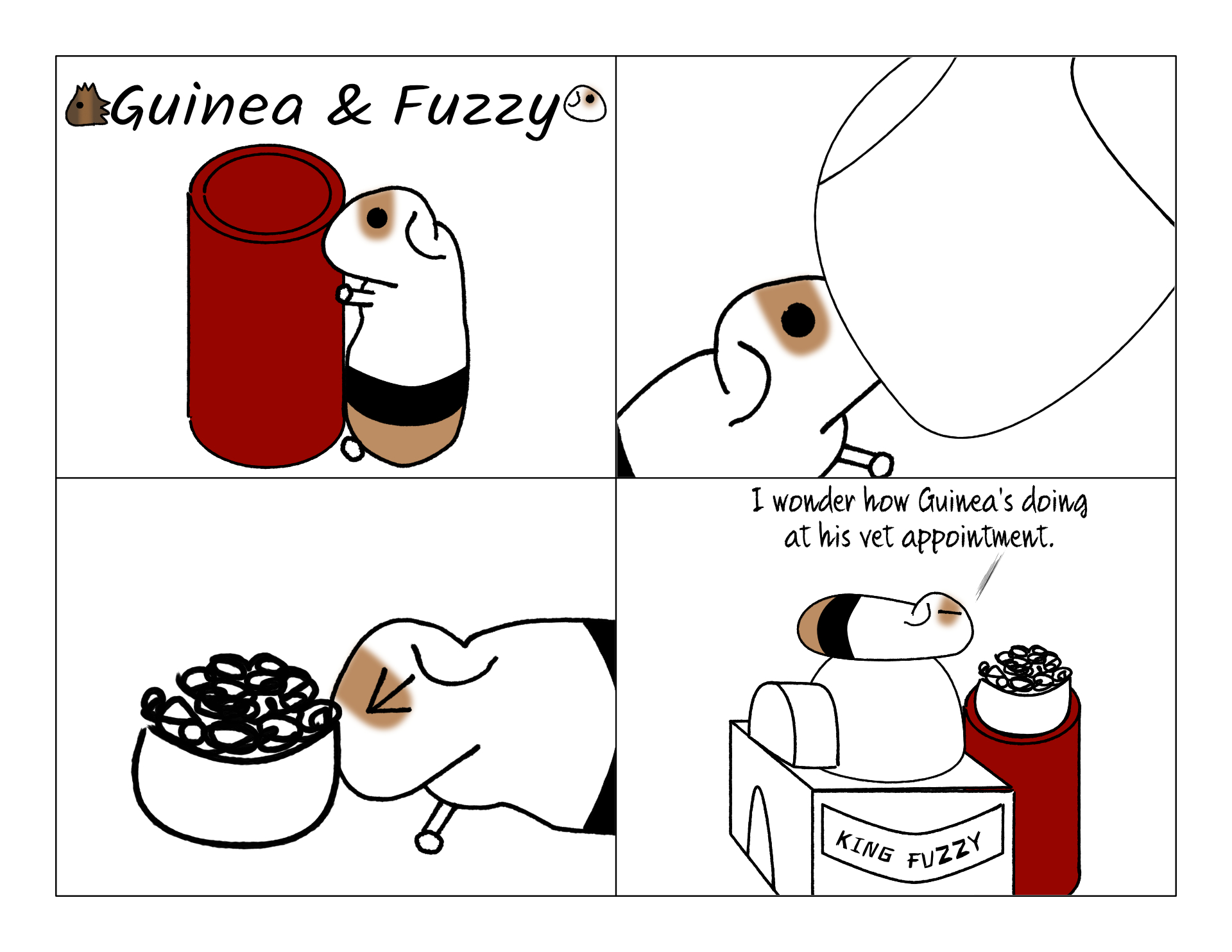 Guinea's first trip to the Animal Hospital was an almost-all-day trip. It was pretty far away, and the appointment was near rush hour. And there was a lot of testing on a busy day at the hospital. We were all there with him, and Fuzzy was home alone.