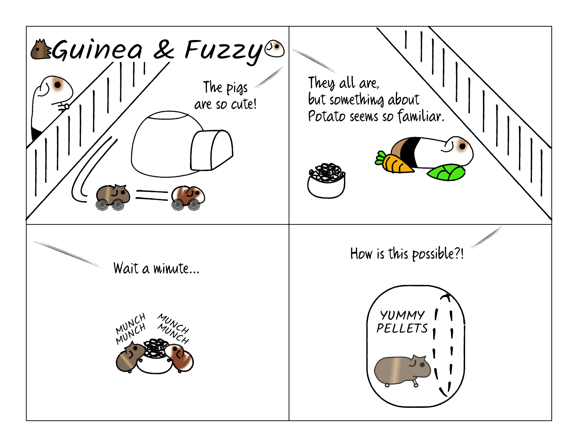 We always thought Guinea was the pig who could have been a product model, because he looked so unique. But all of our pigs are handsome specimens. Of course, it wasn't really Potato on the bag. The pig on the bag was a regular short haired, not a crested.