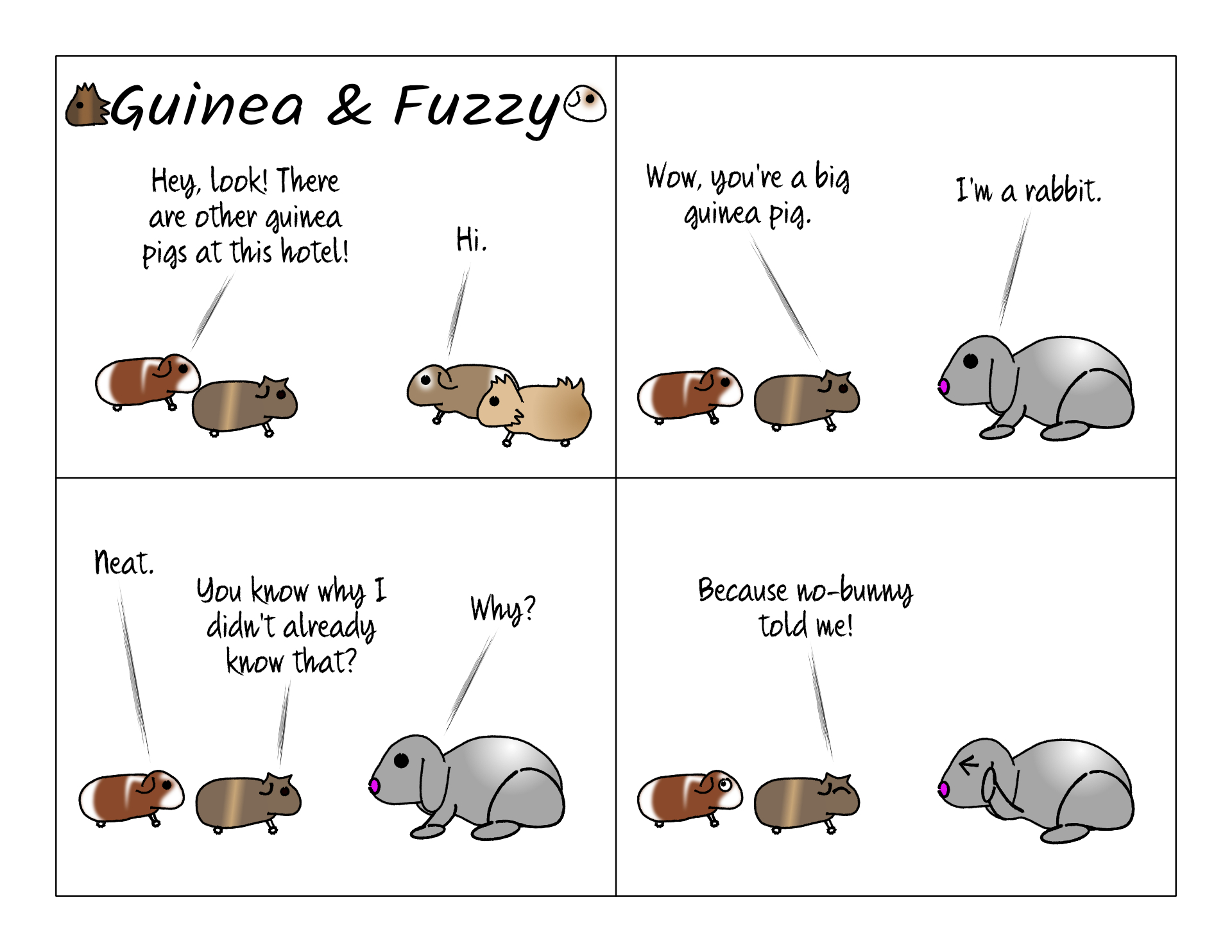 There were at least a few other guinea pigs at the hotel at the same time as our piggies. We saw two other cages with pigs in them. There was also a cage with a rabbit. It's nice to know it's a spot popular with other pigs, but I doubt they were allowed to socialize. Only because guinea pigs can be quite picky with whom they hang out with, and they wouldn't want to have to break up any fights.