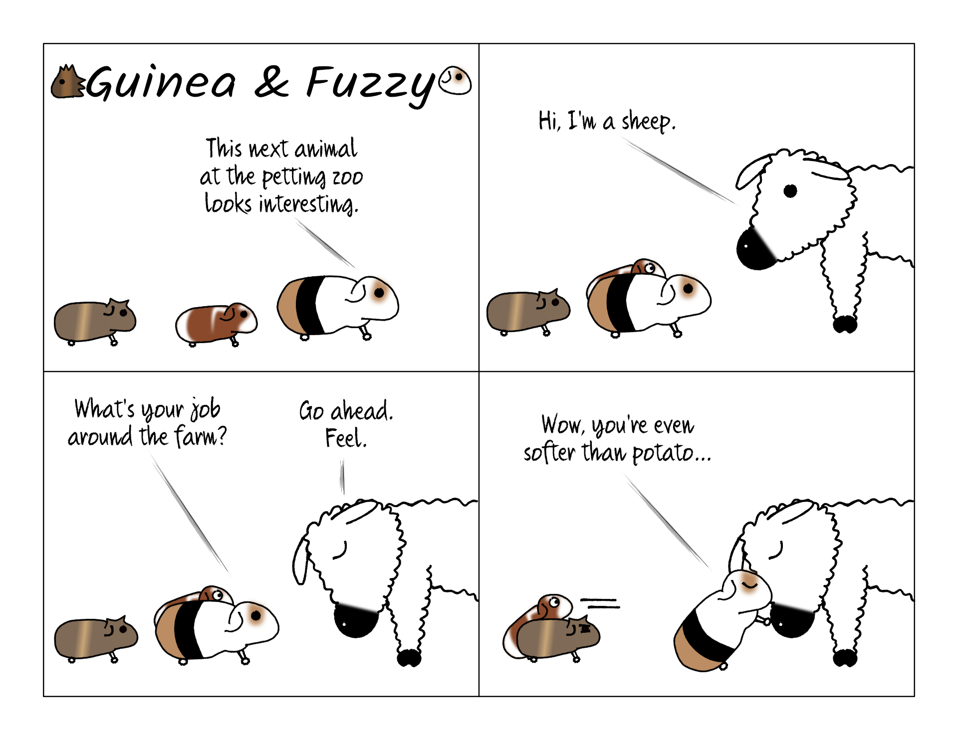 Sorry that sheep looks so weird. Kind of hard to capture a sheep with my deliberately minimalist comic style. The idea behind the art style was to make the comics easier to draw every single day, but it was a bit challenging to get the sheep looking like an animal at all with that technique.