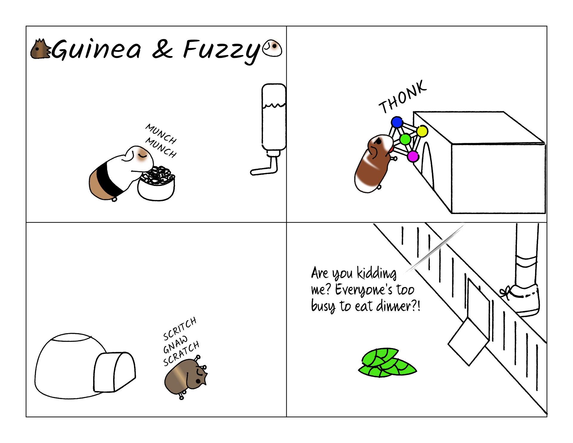 The piggies always come running when it's dinner time. They line up and beg for food while I'm cleaning the cage. As soon as I'm done, I bring the food over, and they all circle around and enjoy.