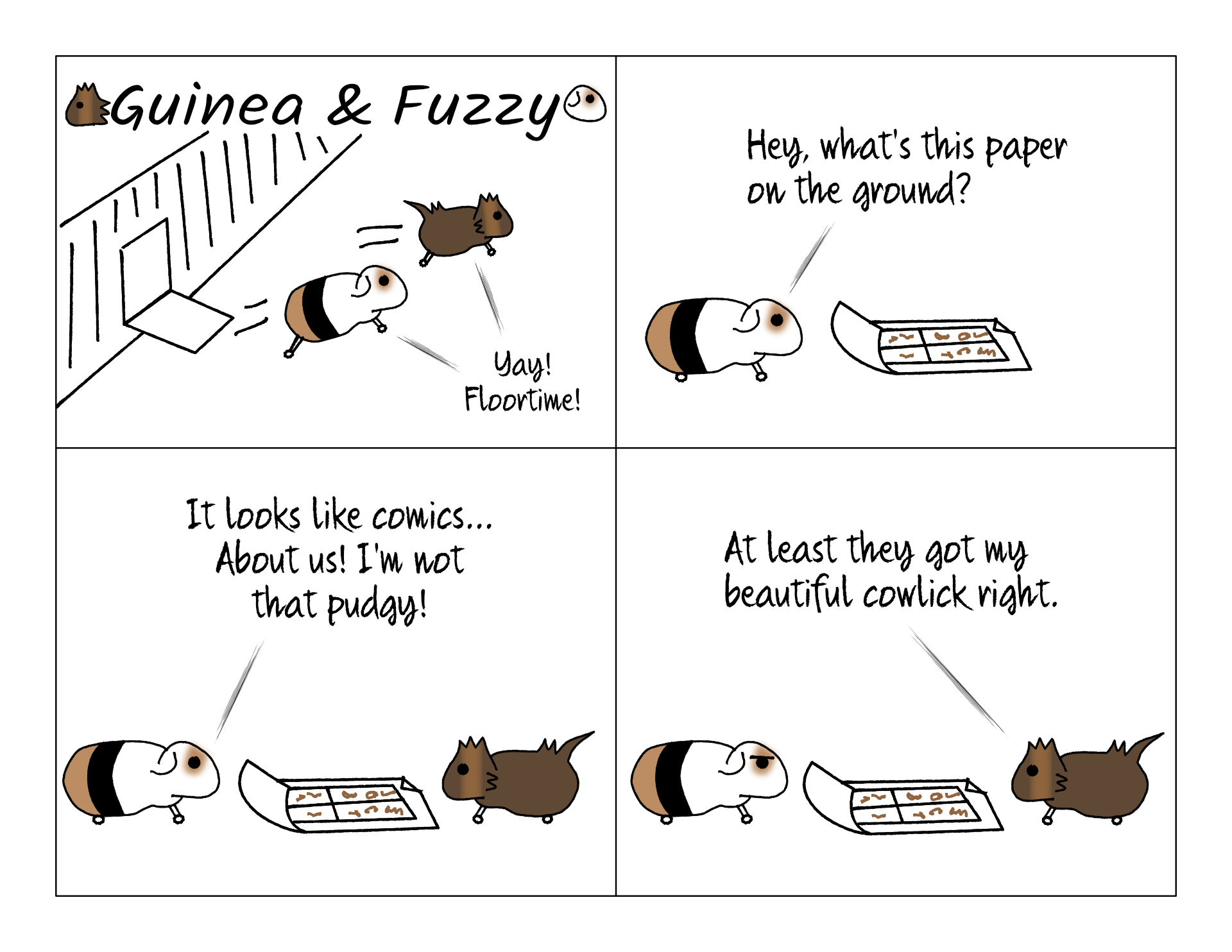 The pigs didn't actually find a stray comic lying around, but we did drop one of the original paper sketches once and wonder what would happen if they did.