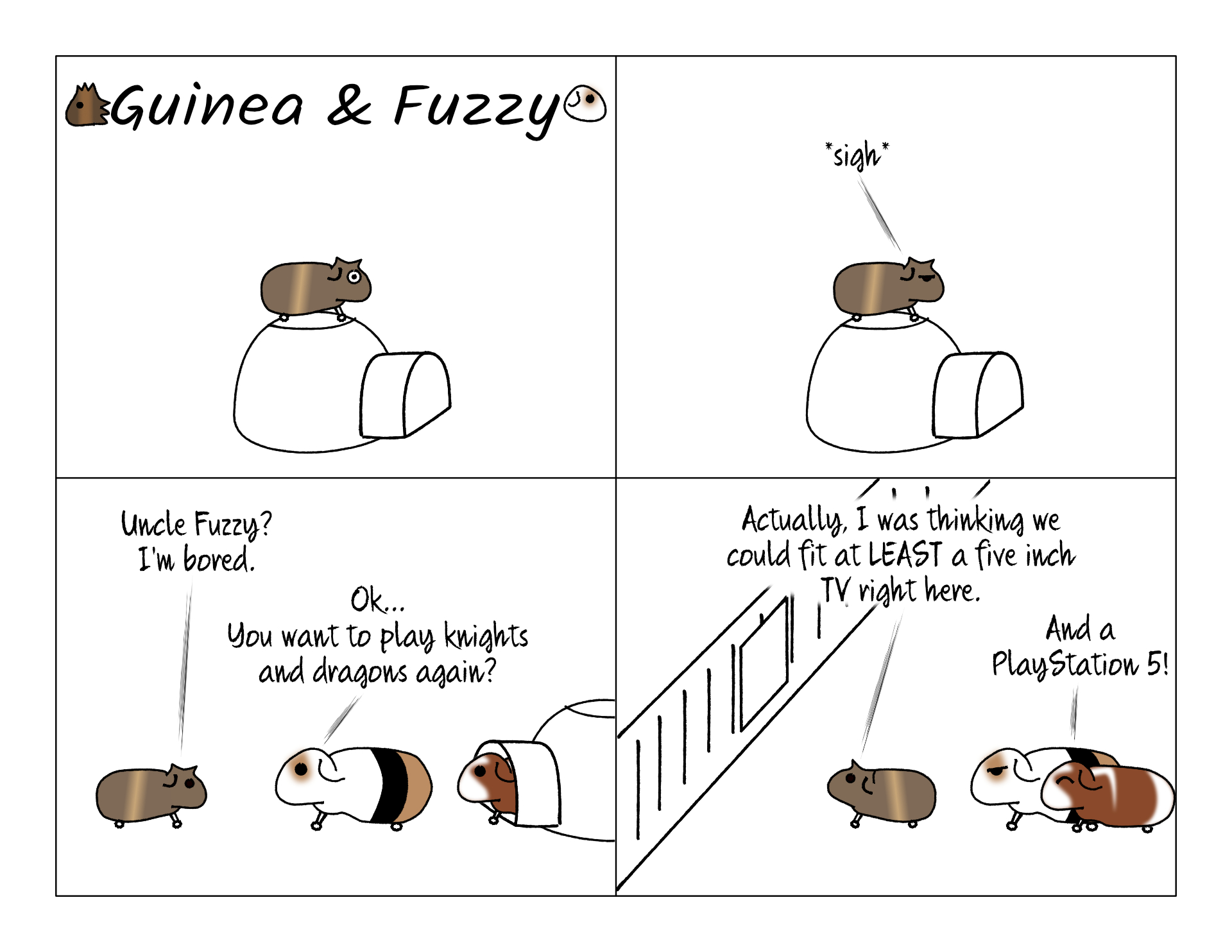 For guinea pigs the most important thing is to keep them together so they don't get lonely. I guess they all have such unique personalities, that interacting with each other is what keeps them from getting bored. If we find any more toys that they like, though, we will spoil them.