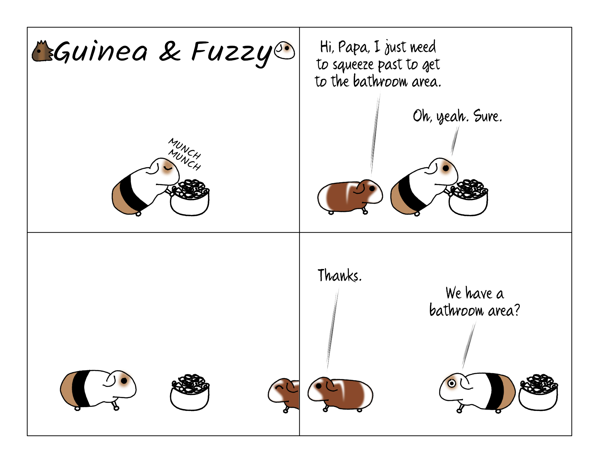 I don't know what's more amazing. That the pigs suddenly designated a corner of their cage as the "bathroom," or that it was Bean who taught them all the use it. We noticed it when Bean walked near the corner with his back to it, then backed in and started doing his business... And we all looked away to give him privacy.