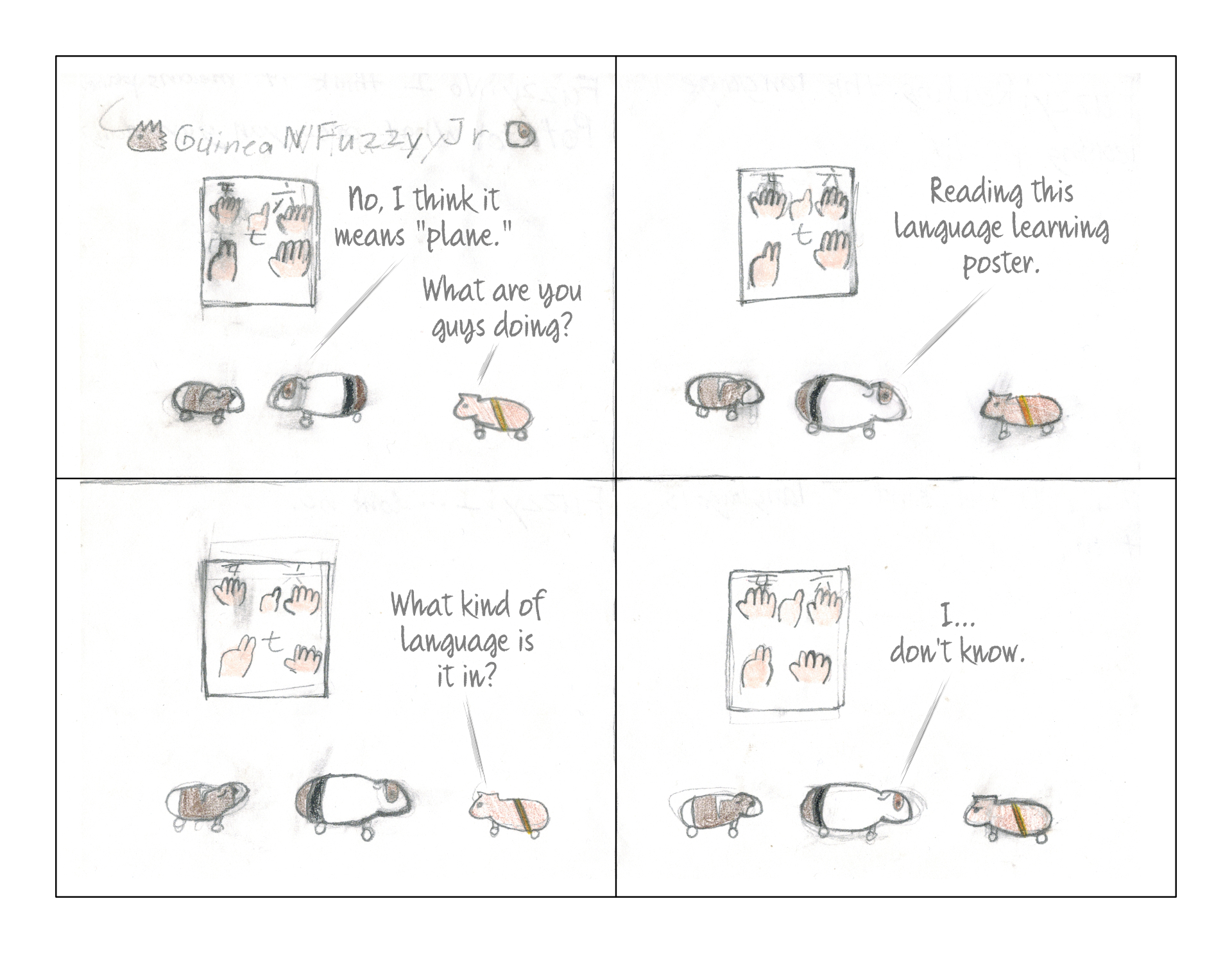 We do have a language poster right next to the guinea pig cage. Potato might like learning languages. But I don't know about the other pigs...