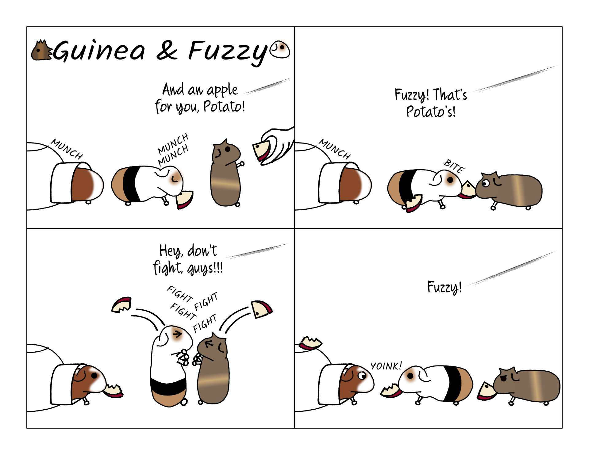 That's Fuzzy, always trying to see who else's food he can take. Usually it works out, because if he takes someone else's food, they just take his. But not if it goes somewhere no one can find.