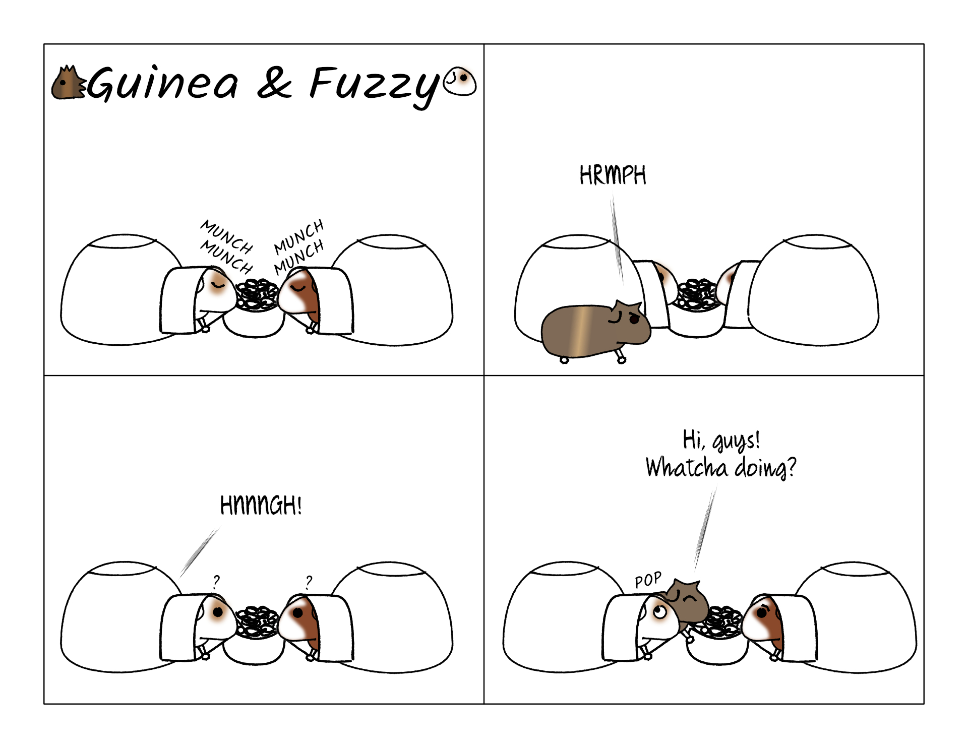 Poor Potato. The other pigs already don't let him share a pigloo with them while they sleep. But sometimes they even exclude him when they're eating pellets. Potato tries to join, but they block him.