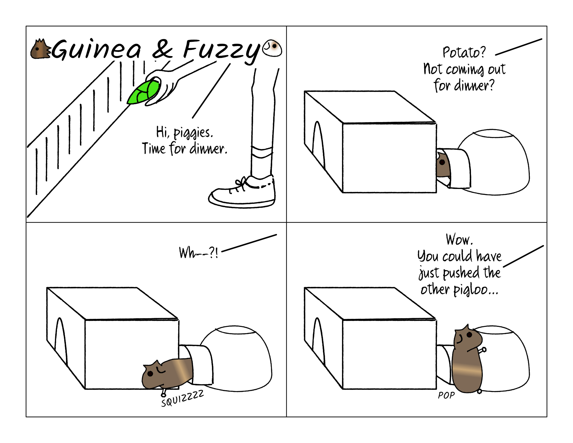 The pigs end up blocked into their pigloos all the time. It's from all the rearranging they do. I think Potato actually likes it.