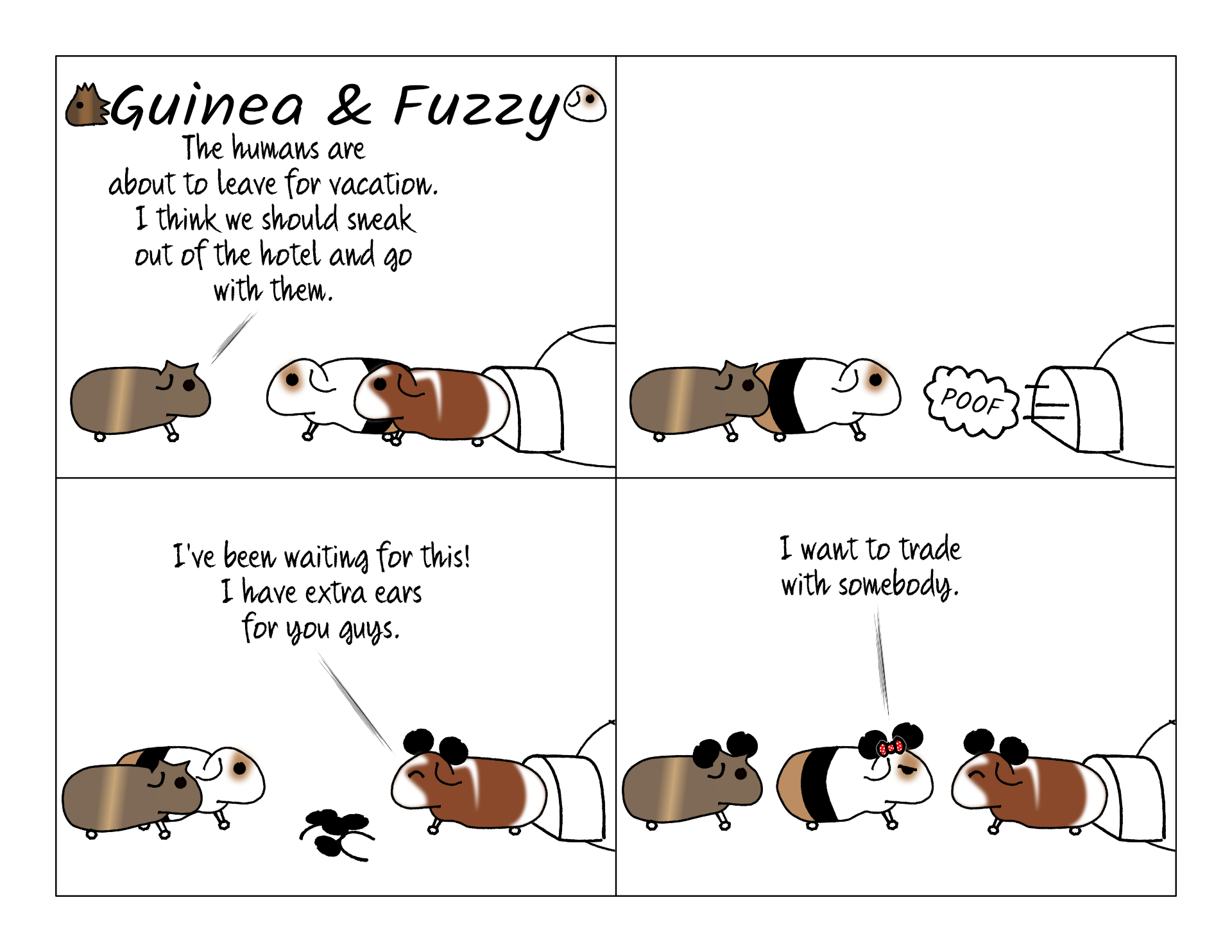 There's something funny about guinea pigs wearing mouse ears. I would say it's because you can still see their real ears. But that's true for humans too!